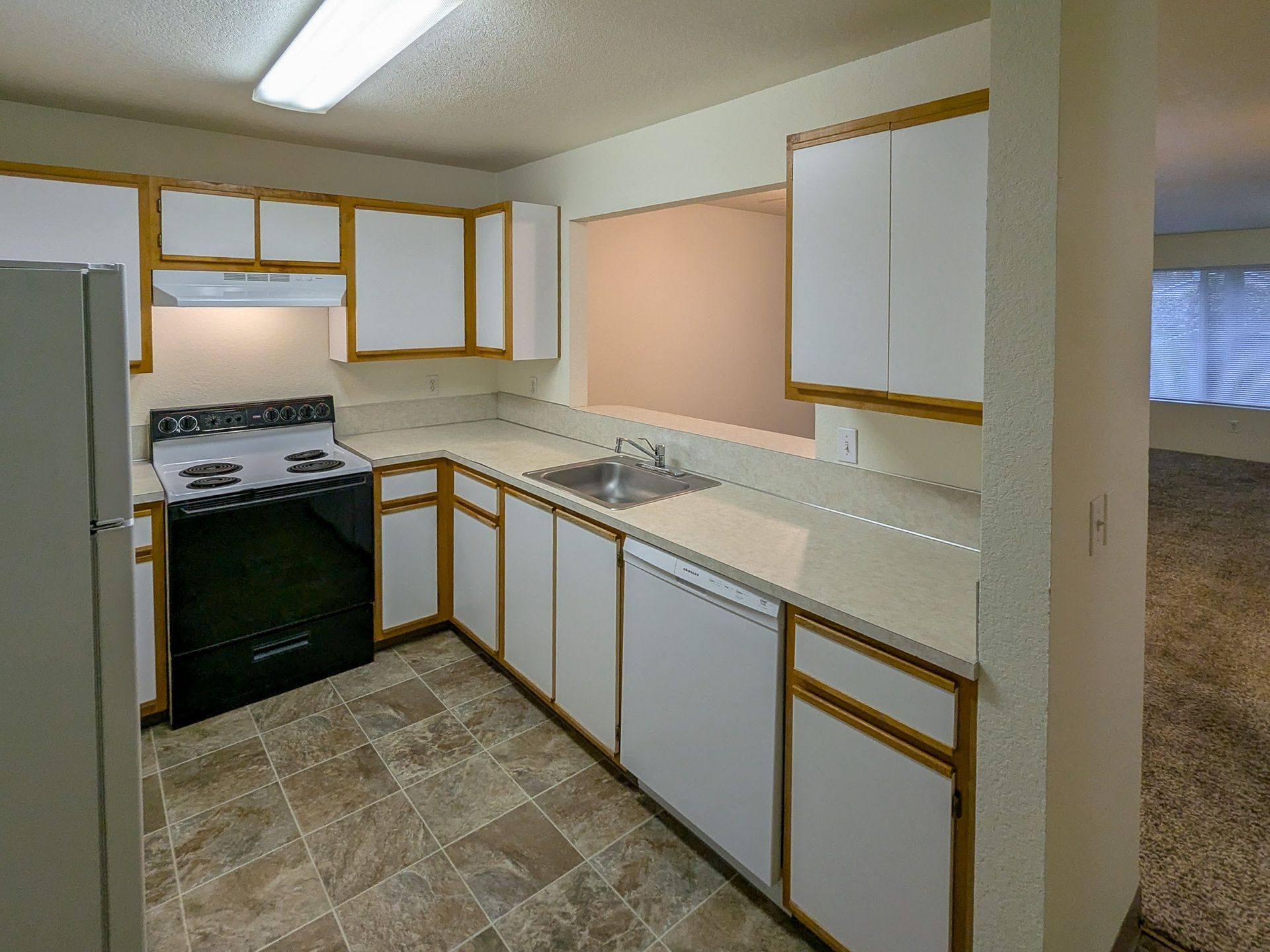 Each unit's kitchen has ample storage, a refrigerator, a dishwasher, and a stove/oven. Additionally, units in this complex include an in-unit washer and dryer. Please note there are no assigned parking spaces at this complex. This unit is in a 55+ community, contact Crown Property Management, Inc. for more information.
