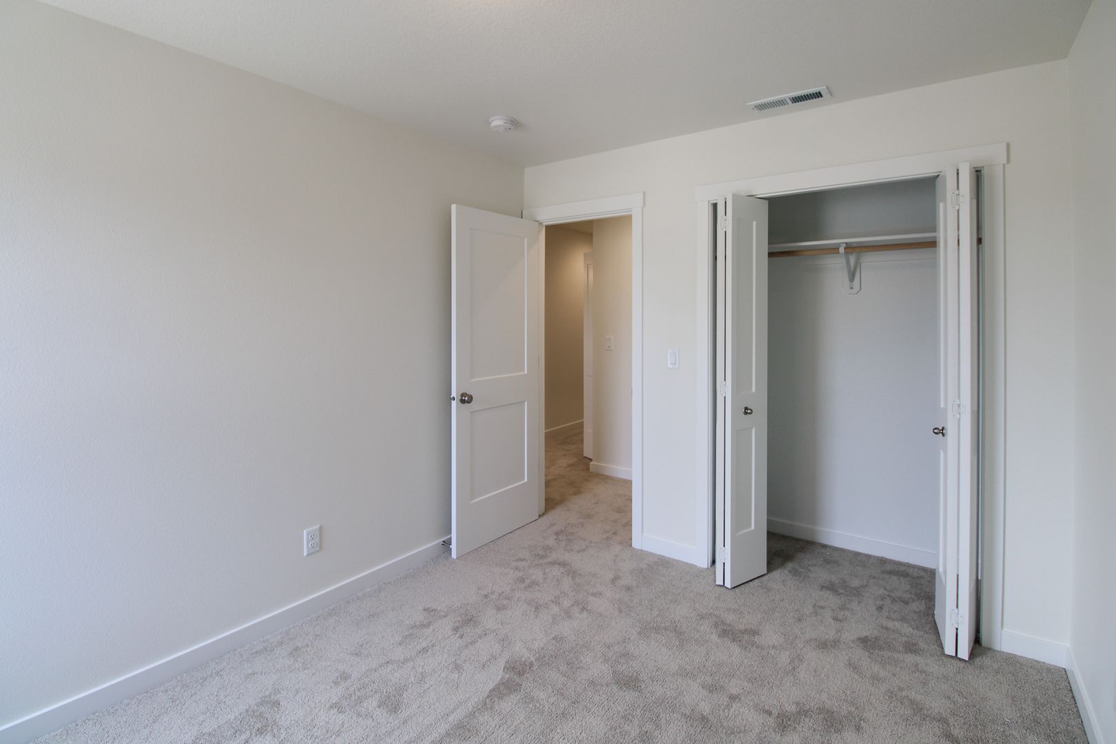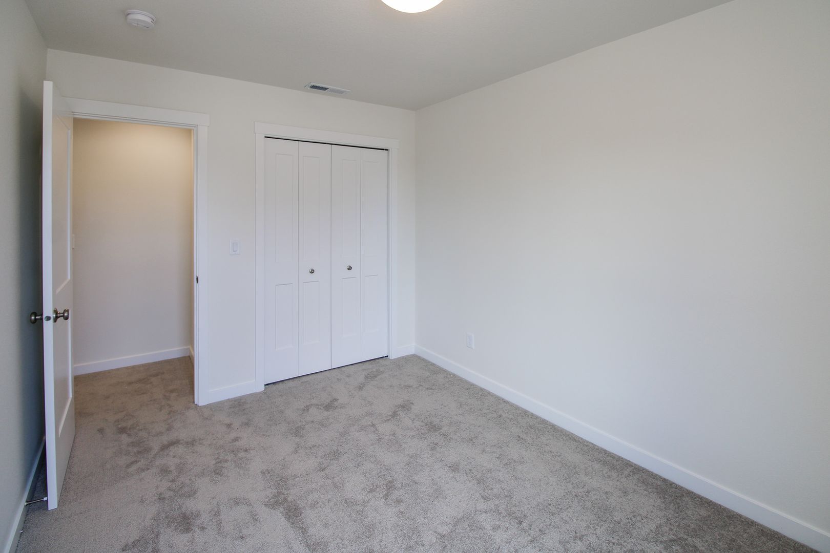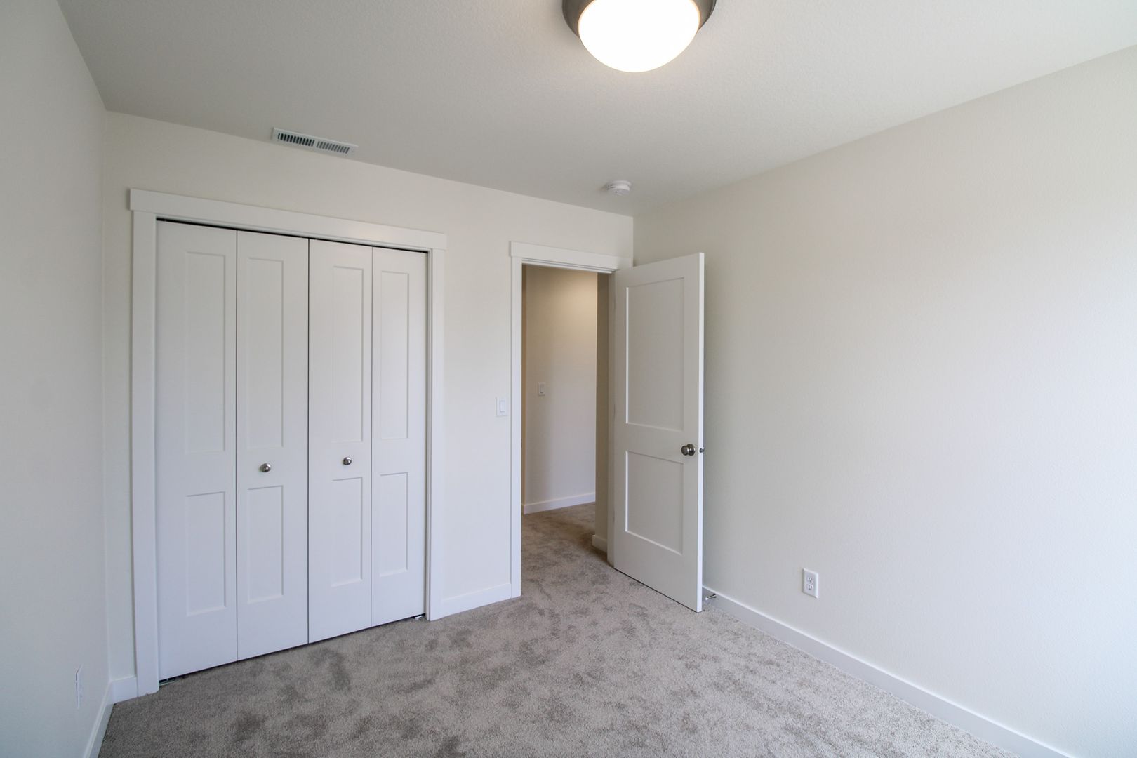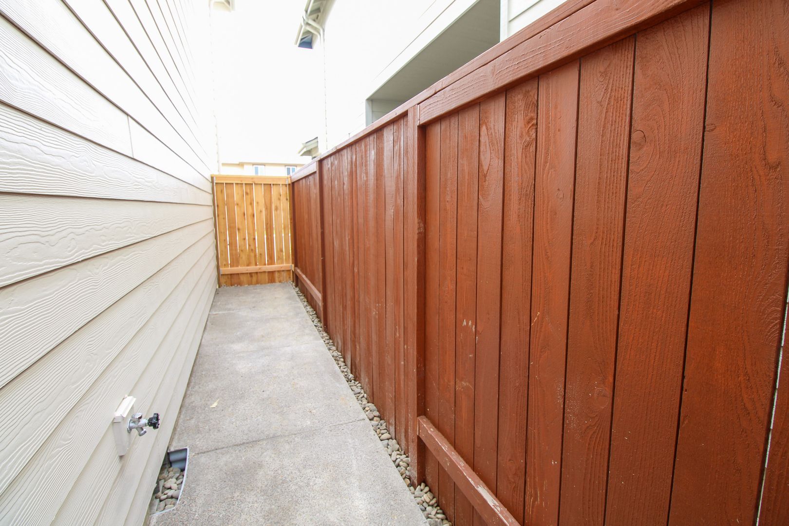 This townhome style unit features LVP flooring, stainless steel appliances (refrigerator, stove/oven, dishwasher, microwave) and quartz countertops. The living area, kitchen, and garage entrance are on the main floor. The half bathroom is located off the stairway landing. The bedrooms and full bathrooms are located upstairs. The primary bedroom has vaulted ceilings and two closets! There is a spacious closet off of the attached bathroom with a double vanity. Other features of the unit include a washer/dryer, a sliding glass door to the fenced patio area, forced air heat/AC, and an attached two car garage.