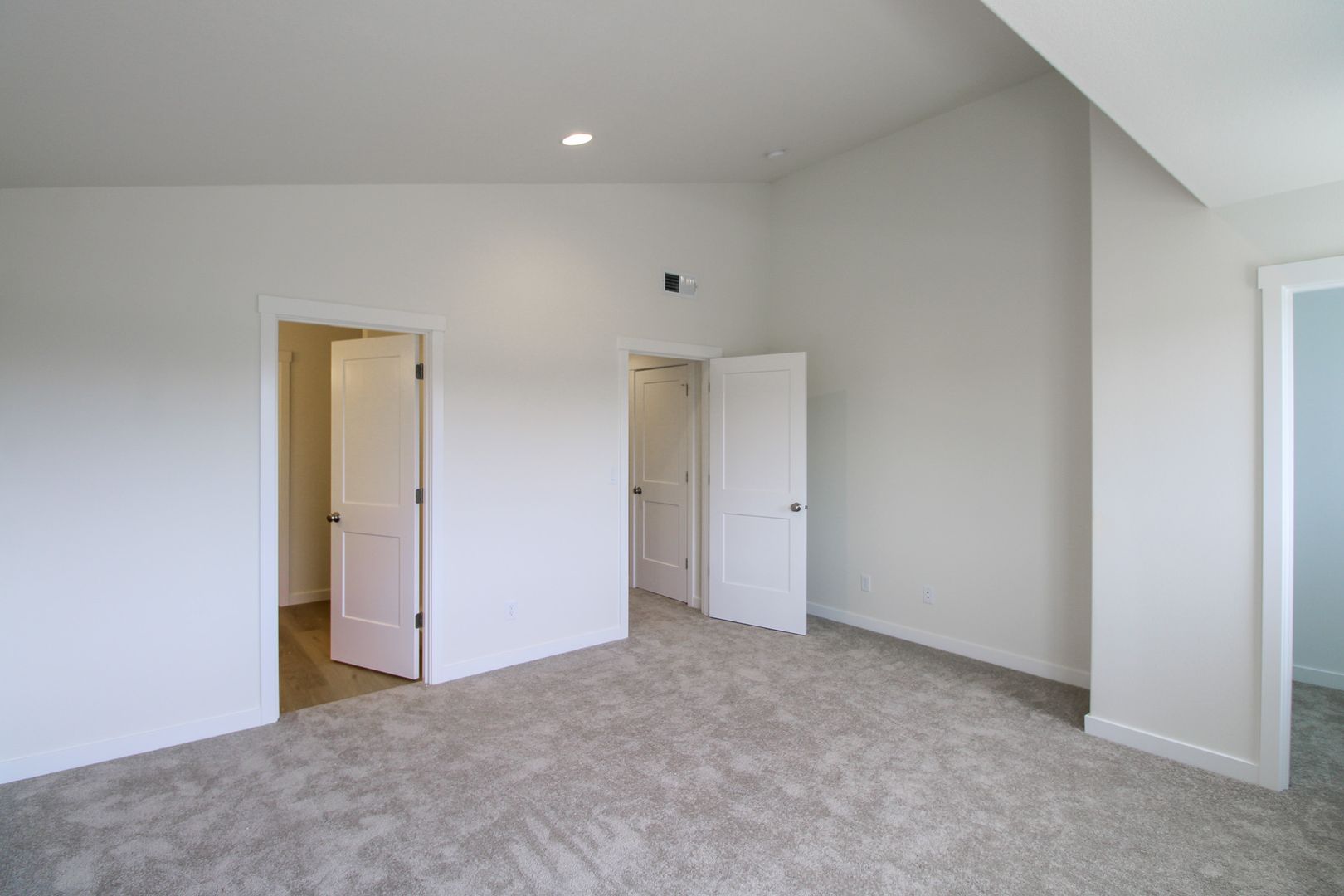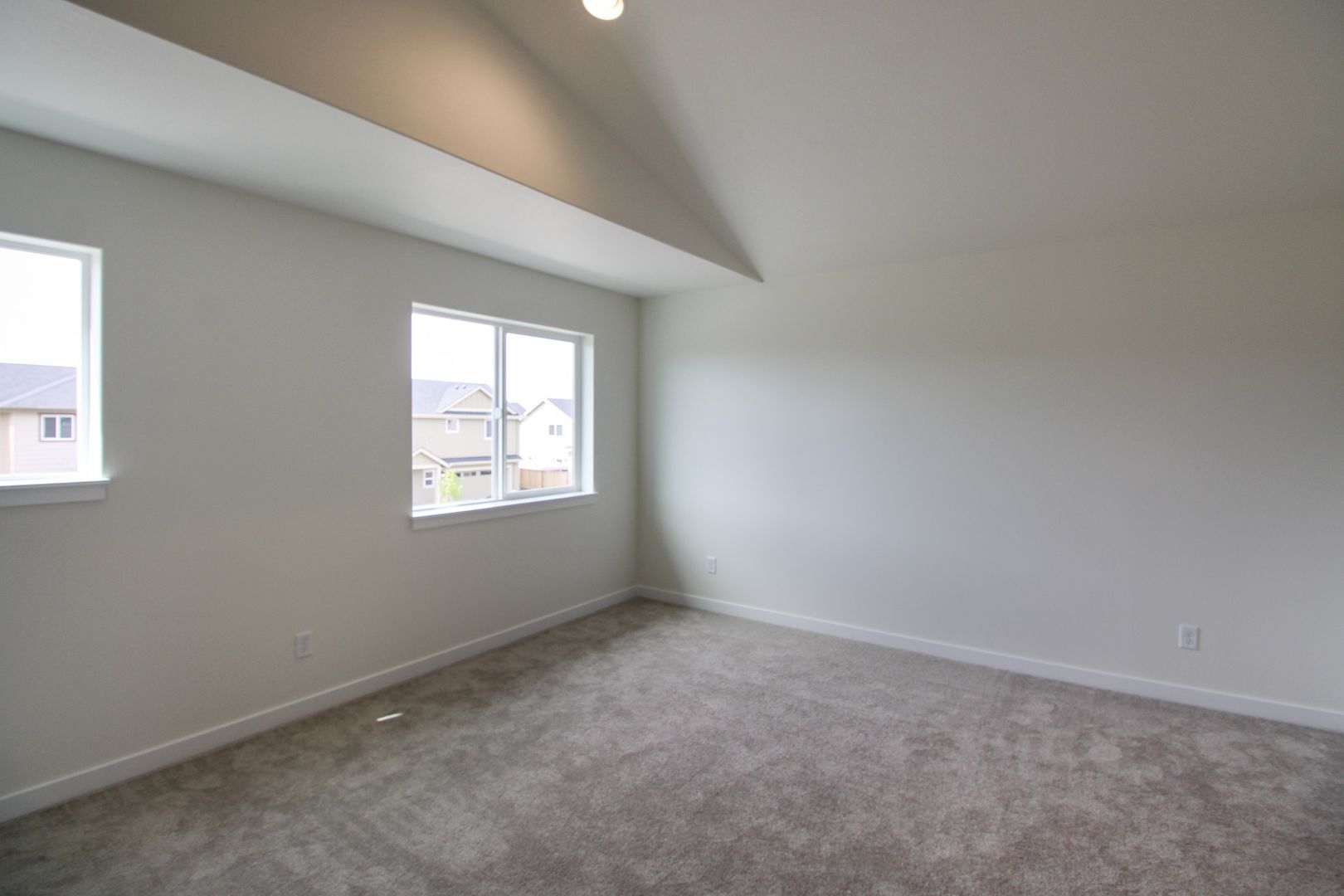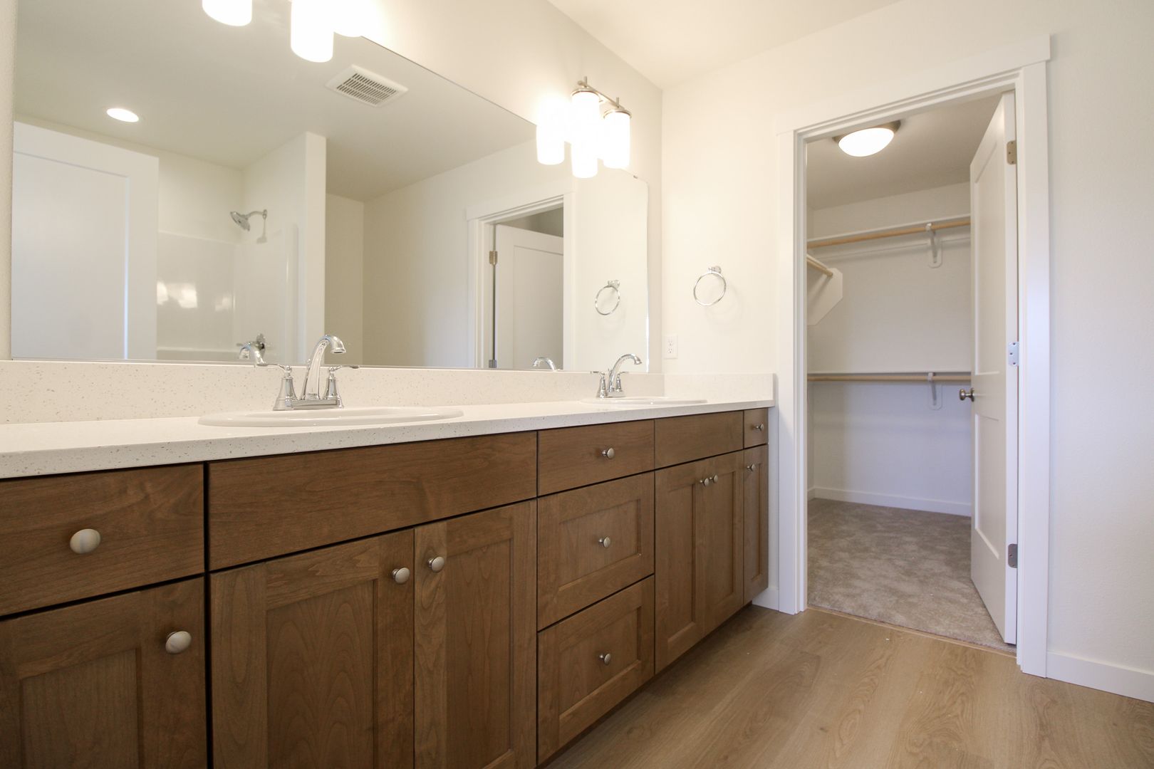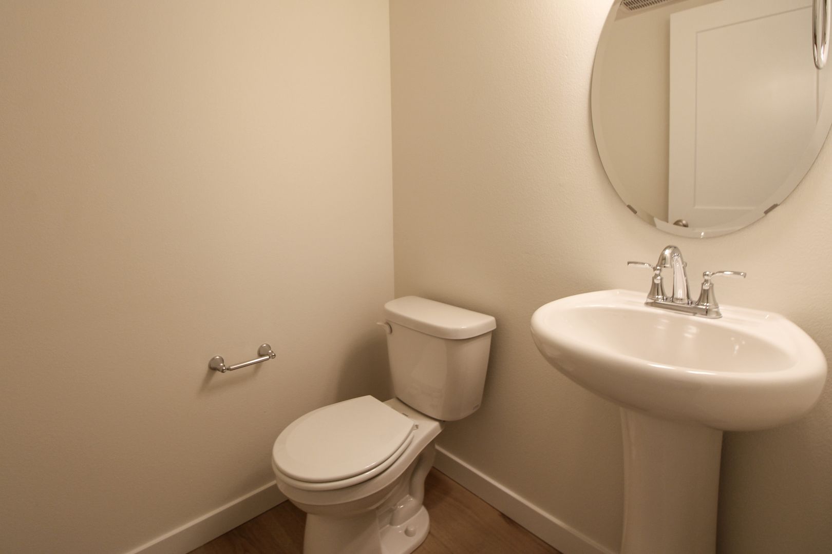 This townhome style unit features LVP flooring, stainless steel appliances (refrigerator, stove/oven, dishwasher, microwave) and quartz countertops. The living area, kitchen, and garage entrance are on the main floor. The half bathroom is located off the stairway landing. The bedrooms and full bathrooms are located upstairs. The primary bedroom has vaulted ceilings and two closets! There is a spacious closet off of the attached bathroom with a double vanity. Other features of the unit include a washer/dryer, a sliding glass door to the fenced patio area, forced air heat/AC, and an attached two car garage.