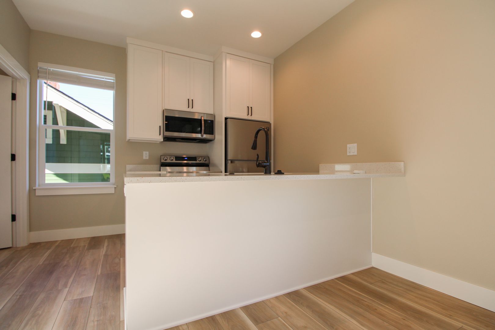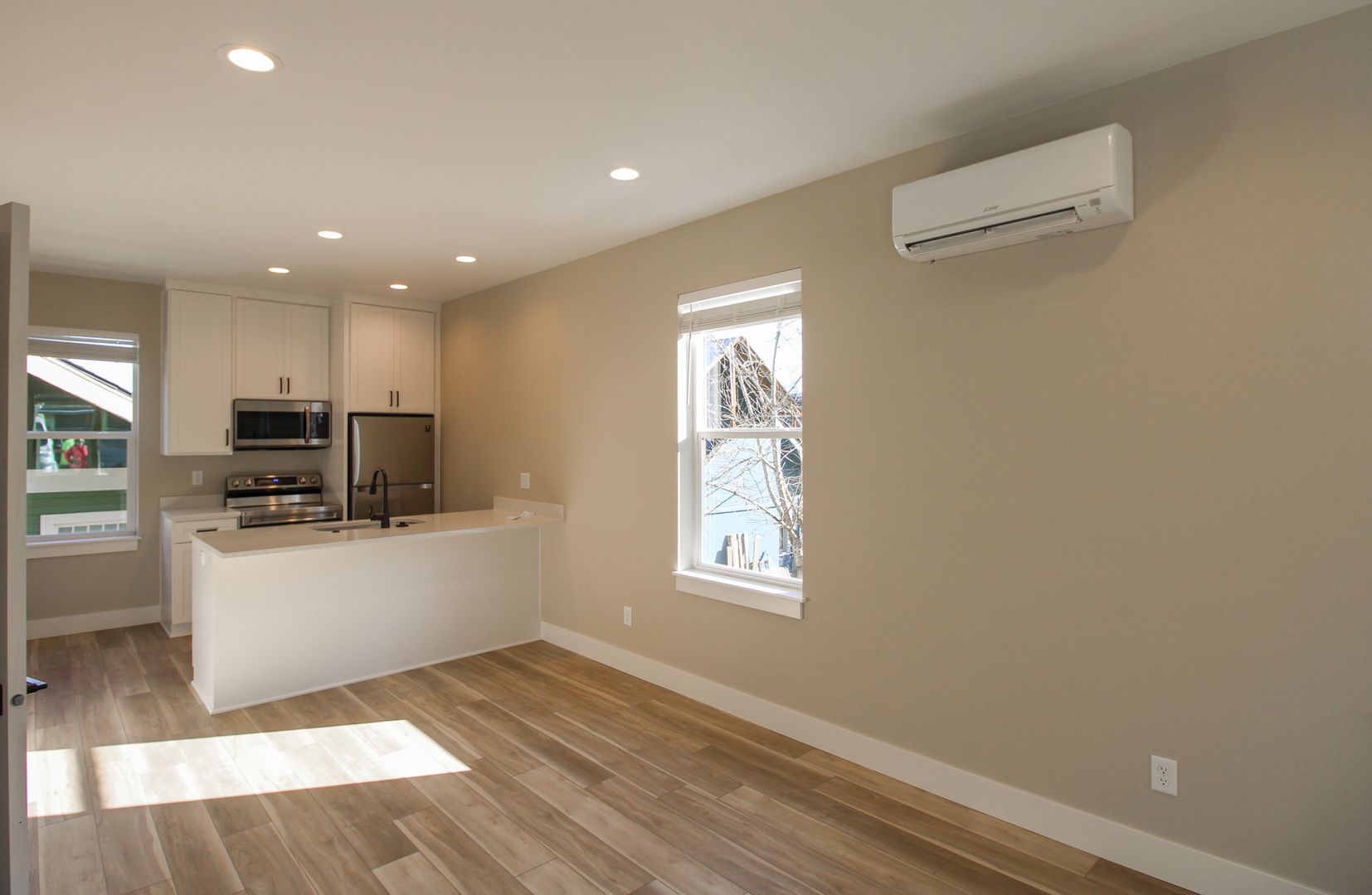 This townhome style duplex features a bright open living space, kitchen, laundry room and half bath. The kitchen has stainless steel appliances including a refrigerator, stove/oven, dishwasher and microwave. The full bathroom and bedrooms are located upstairs. The bedrooms have vaulted ceilings, recessed lighting and cadet heaters. Other features of the unit are off street parking for one vehicle, a mini split heating/cooling system, and an included washer/dryer!