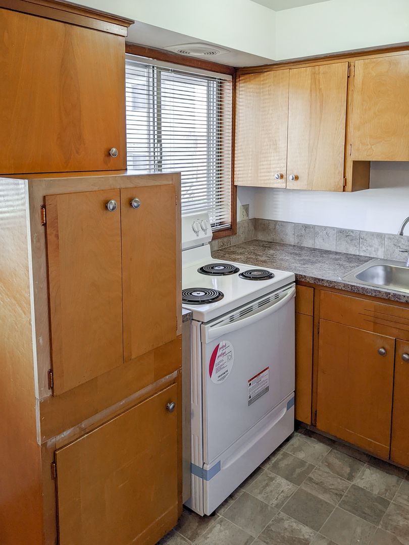 This downstairs unit includes a kitchen equipped with a refrigerator and a stove/oven (please note: there is no dishwasher). The unit features an open living room, extra storage cabinets and drawers, and access to a back patio. Heating is provided by electric cadet heaters.