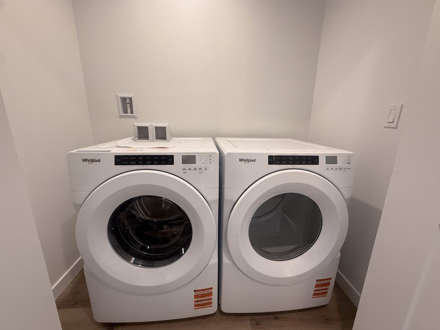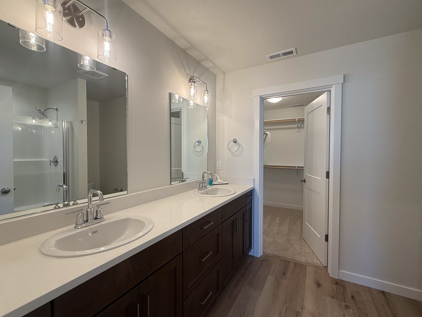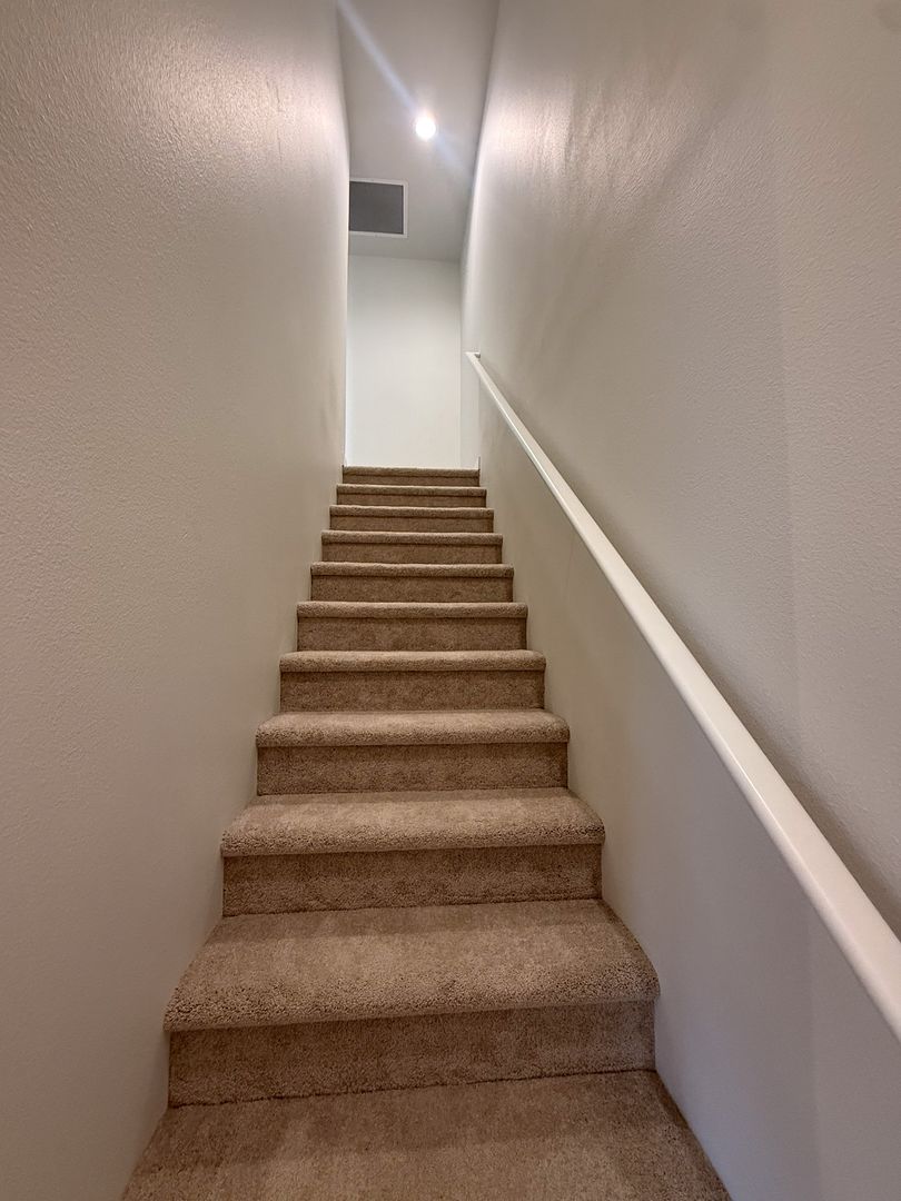 The bedrooms and full bathrooms are located upstairs along with the laundry area with a washer and dryer included. The primary suite offers an attached bathroom with double sinks and a spacious closet.