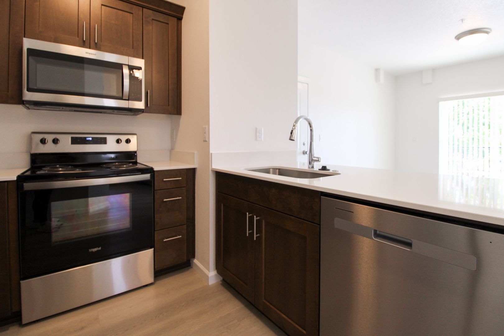 This second floor one bedroom one bathroom unit features a stacking washer/dryer in the unit! The unit has LVP flooring, stainless steel appliances (refrigerator, stove/oven, dishwasher, microwave) and quartz countertops. The primary bedroom features an attached bathroom and a spacious closet! Other features of the home include extra storage spaces throughout, mini-split heat/AC, a sliding glass door leading to the patio/balcony and off street parking!