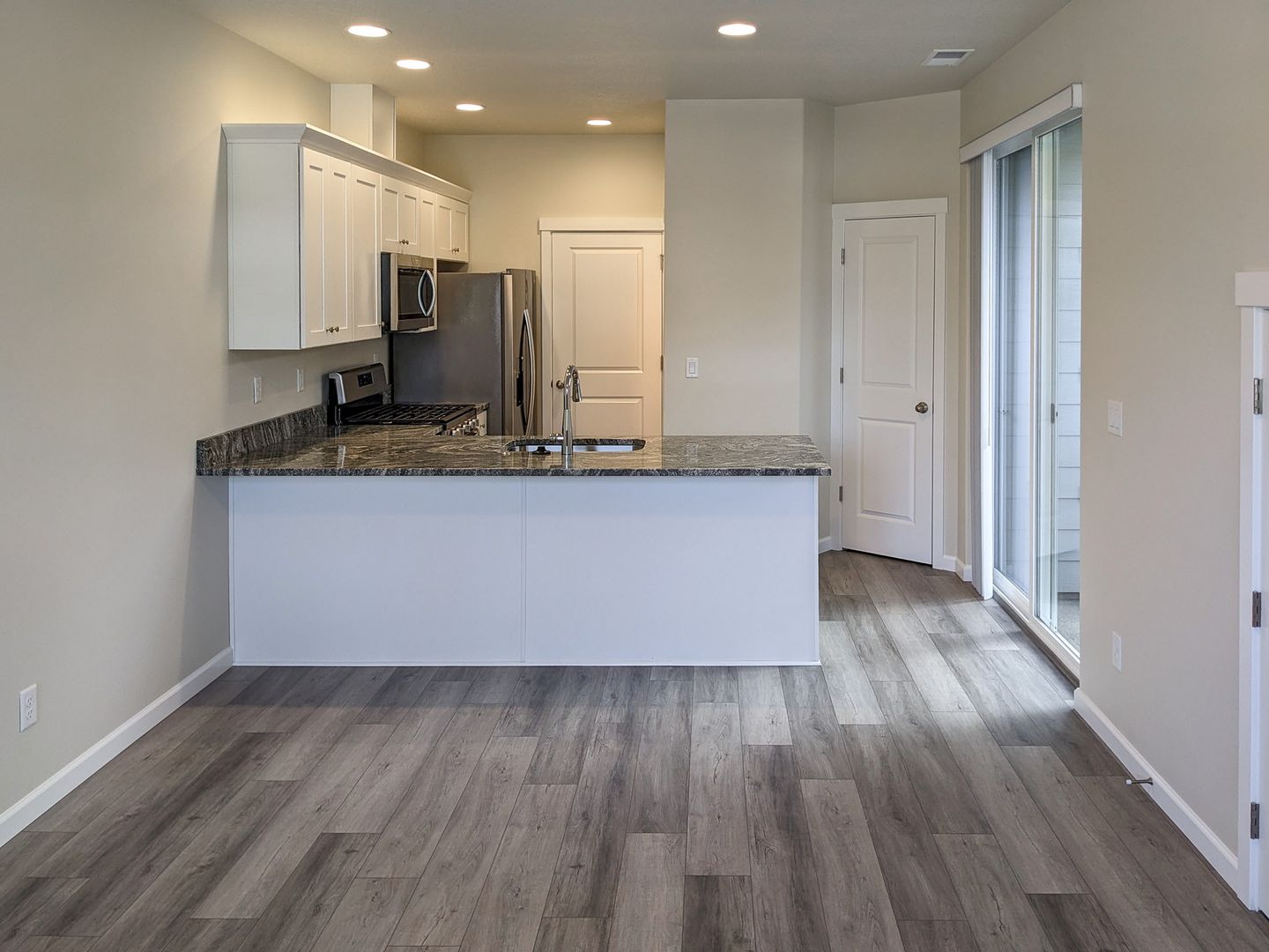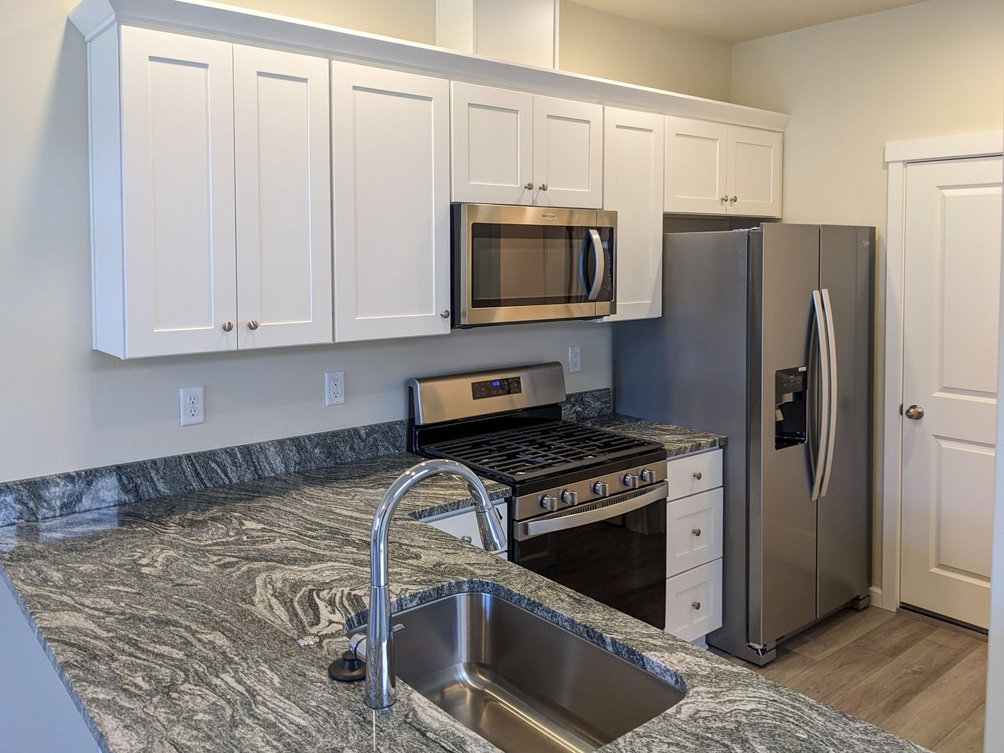 This townhome style unit features an attached garage with entry from the back! The kitchen has stainless steel appliances including a refrigerator, dishwasher, stove/oven and microwave. The bedrooms are located upstairs along with the full bathrooms and stacking washer/dryer. Other features of the home include a covered front porch and a sliding glass door leading to the patio area.