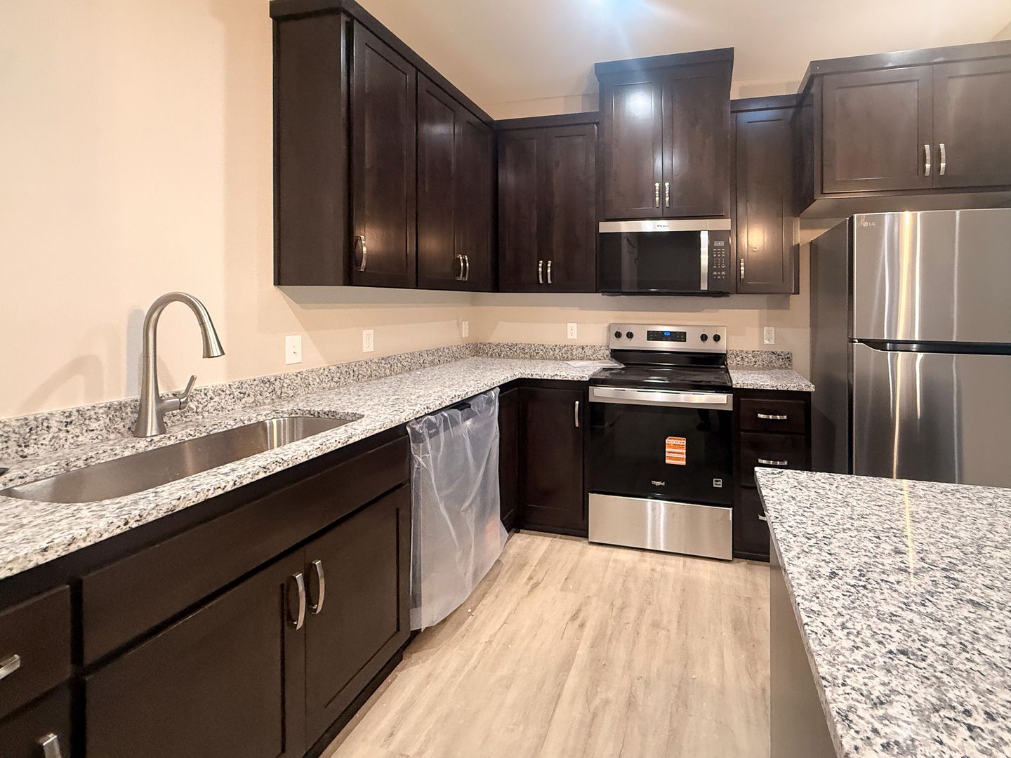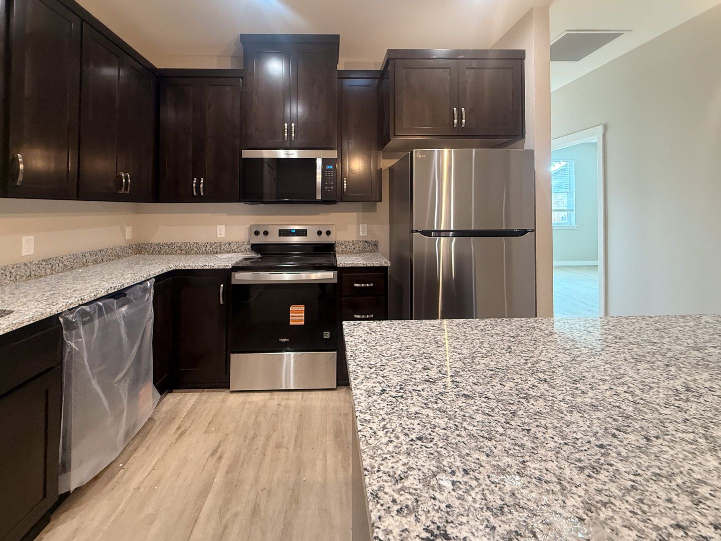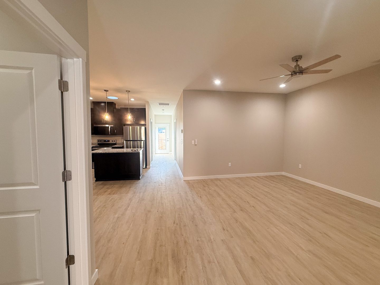 Be the first to live in this NEW CONSTRUCTION single level 4 Plex, which features a modern kitchen equipped with stainless steel appliances, including a refrigerator, stove/oven, dishwasher, and microwave, along with a convenient pantry. The spacious dining area also includes a ceiling fan for your comfort.