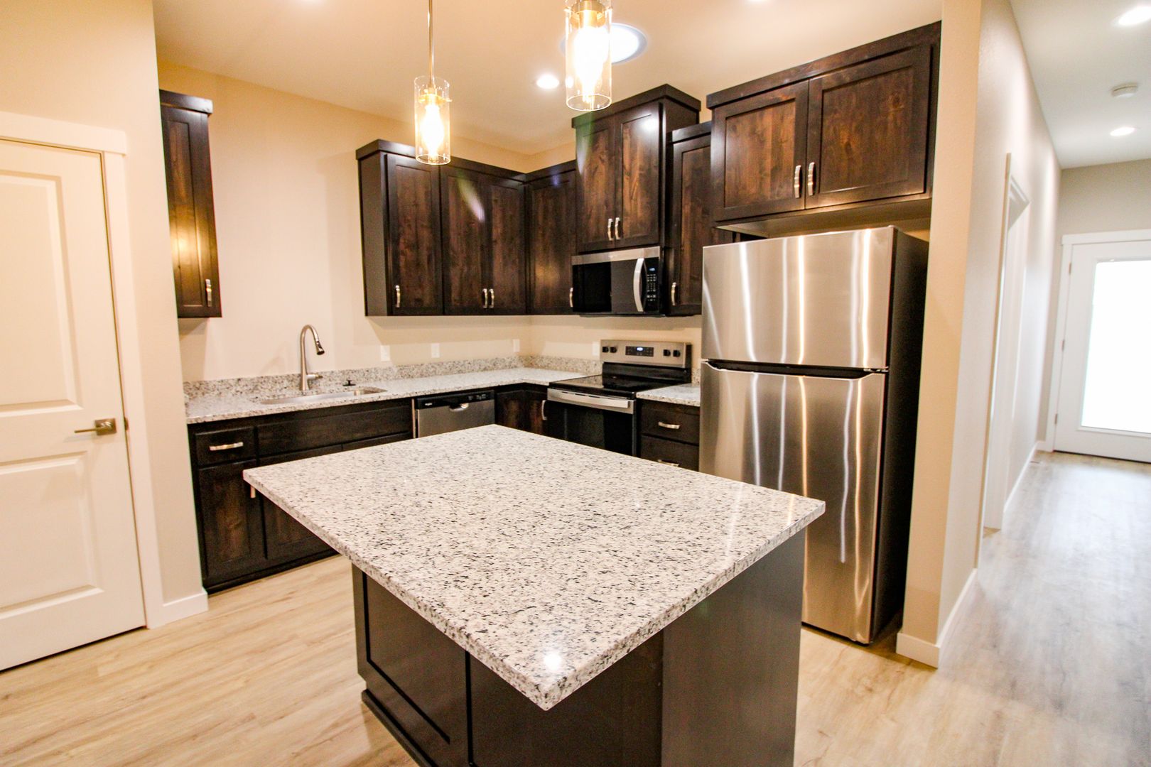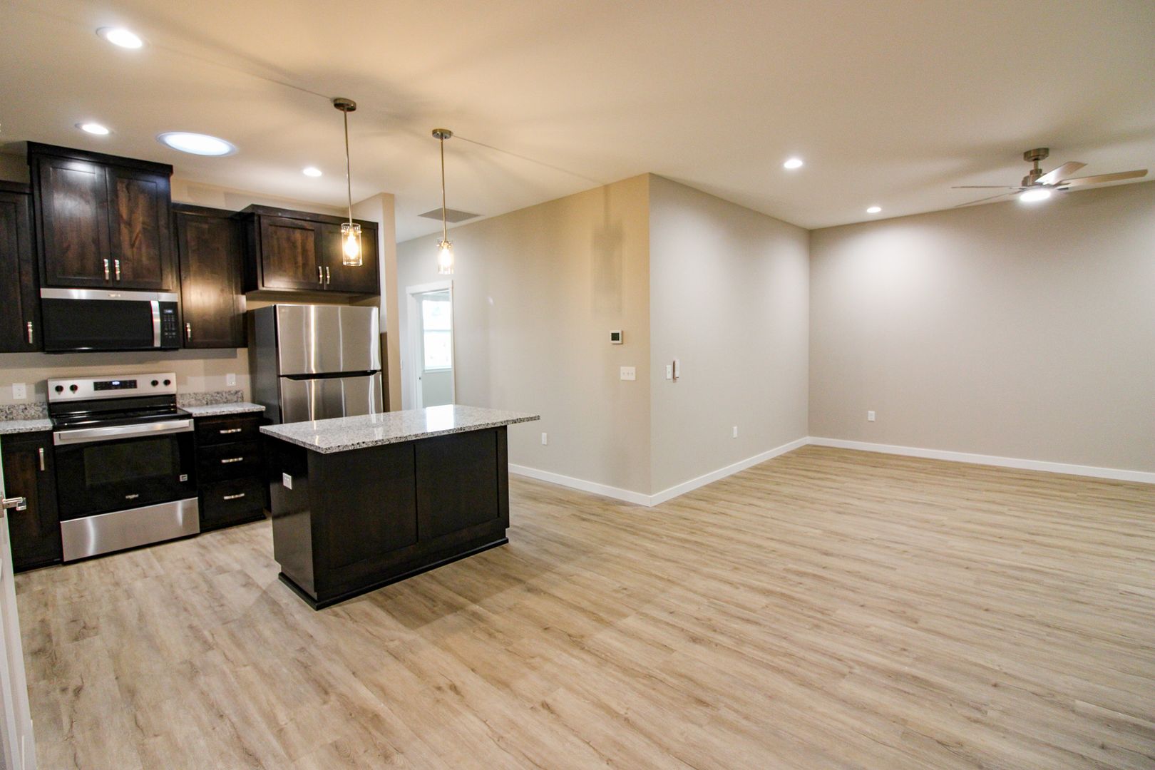 Be the first to live in this NEW CONSTRUCTION single level 4 Plex, which features a modern kitchen equipped with stainless steel appliances, including a refrigerator, stove/oven, dishwasher, and microwave, along with a convenient pantry. The spacious dining area also includes a ceiling fan for your comfort.