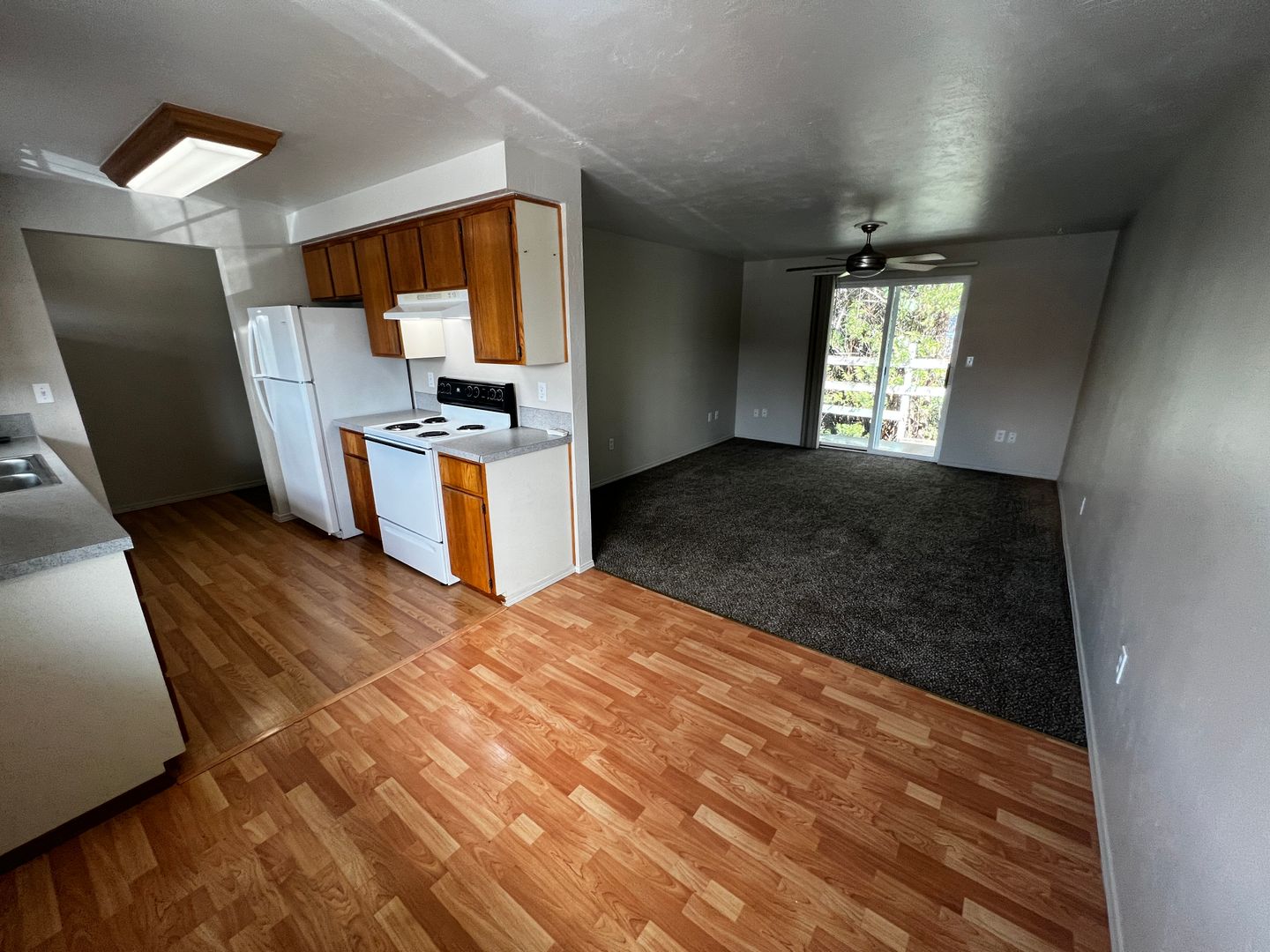 This 2 bedroom, 1 bathroom unit features a dishwasher, stove/oven, refrigerator, and double sink. Additional amenities include a washer/dryer hook-ups, a ceiling fan, and a back patio area.