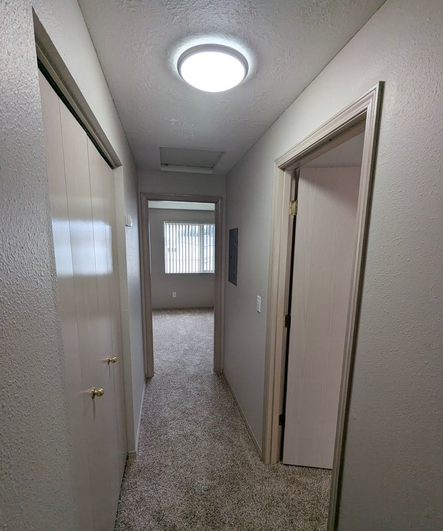 This unit features a stove/oven, refrigerator, dishwasher, and dining area. Both bedrooms are upstairs. There is a downstairs half bath/utility room that features washer/dryer hook-ups and storage cupboards. The unit is heated with electric cadet heaters. Please note that assigned parking is limited to one vehicle per unit.
