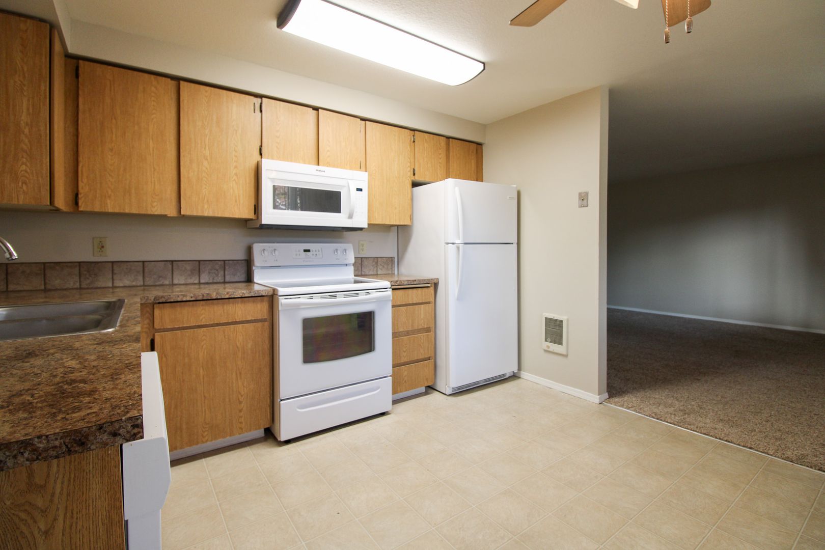 The kitchen includes a refrigerator, microwave, dishwasher and stove/oven. The unit also features cadet wall heaters, ceiling fan, vinyl windows, washer/dryer hookups, on-site laundry room, on-site fitness room, assigned parking and off-street parking.