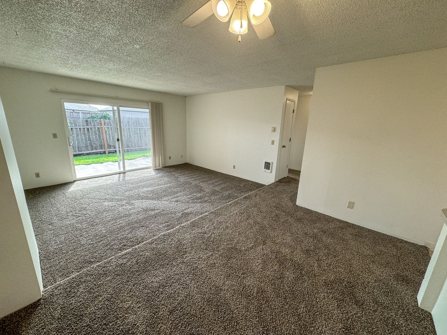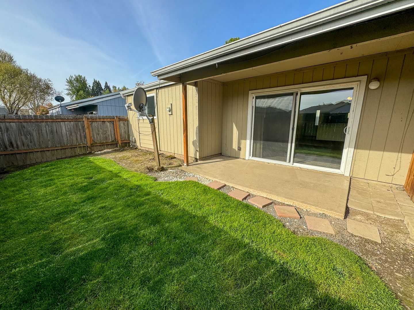 This duplex has a fenced backyard with a covered patio! The kitchen is equipped with a refrigerator, stove/oven and dishwasher. The living area has a ceiling fan and a sliding glass door that leads to the back patio. Other features of this unit include include washer/dryer hook-ups and a single car garage.