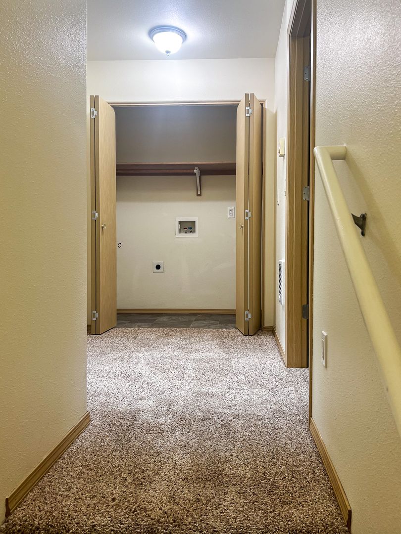 This kitchen features a refrigerator with an ice maker, dishwasher, built in microwave, breakfast nook, and a glass topped stove/oven. Other features include washer/dryer hook-ups in a bi-fold utility closet, ceiling fans, skylights, vaulted ceilings. There are two primary bedrooms, both upstairs; each has a full bathroom. One bedroom features a standard bi-fold closet; the other bedroom features a spacious closet. The half bathroom is downstairs. Each unit has a back patio and an attached single car garage with opener.