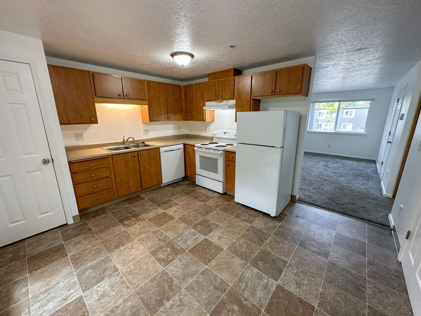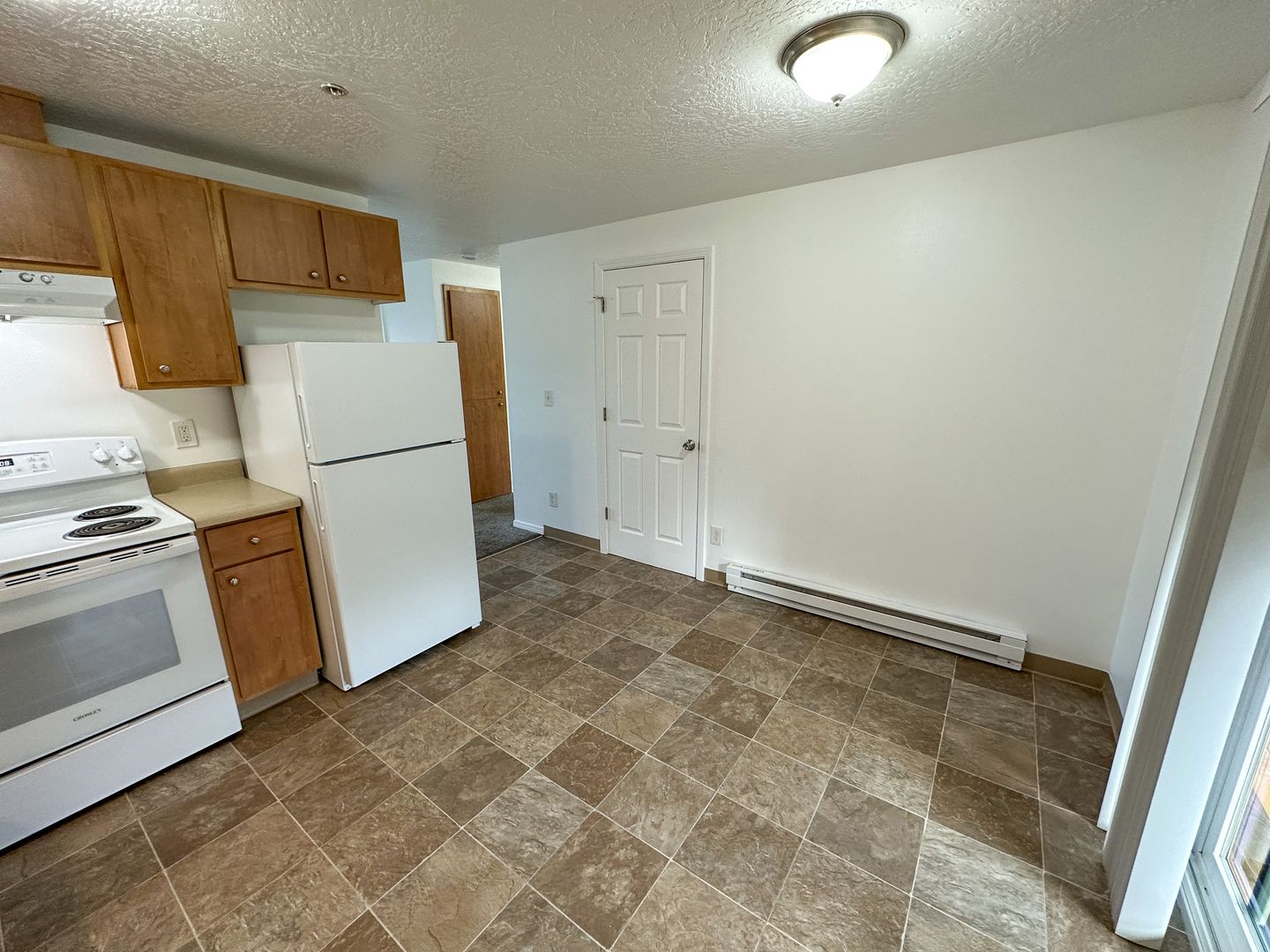 This upstairs unit features a kitchen with a refrigerator, stove/oven, dishwasher and double sink. Located off of the kitchen is a covered back balcony with a sliding glass door! Other features of the unit include covered off street parking for one vehicle, baseboard heating and an onsite laundry room.