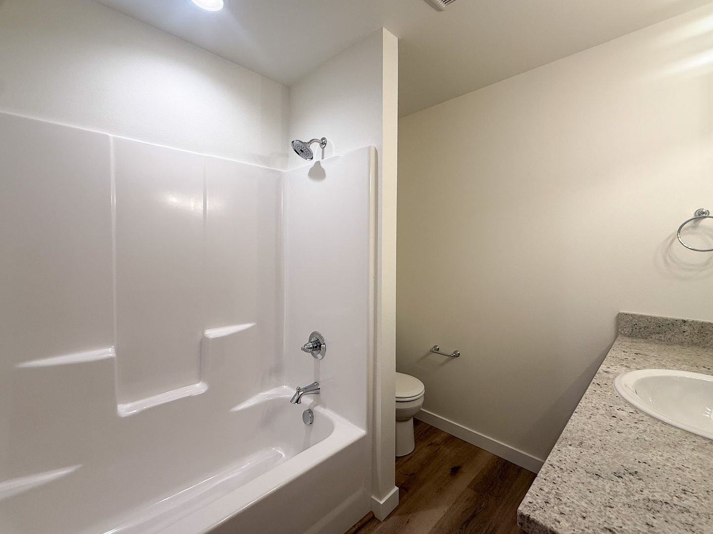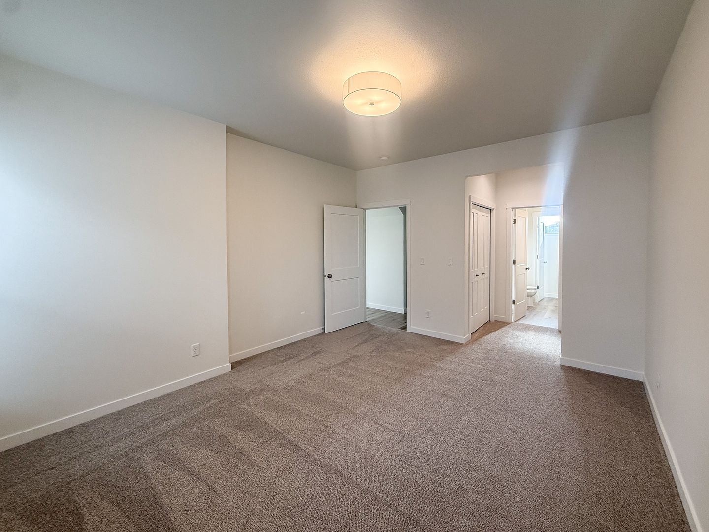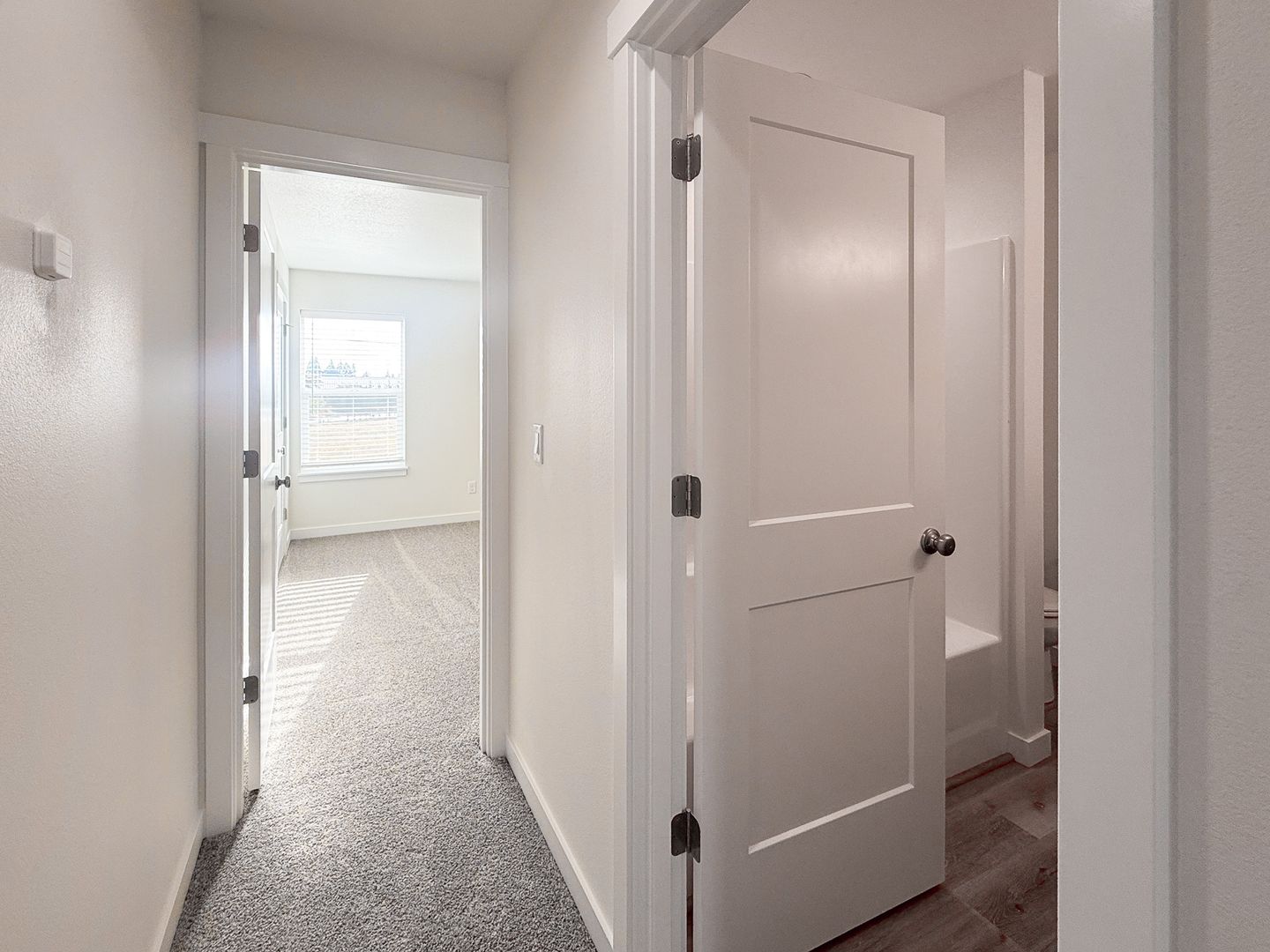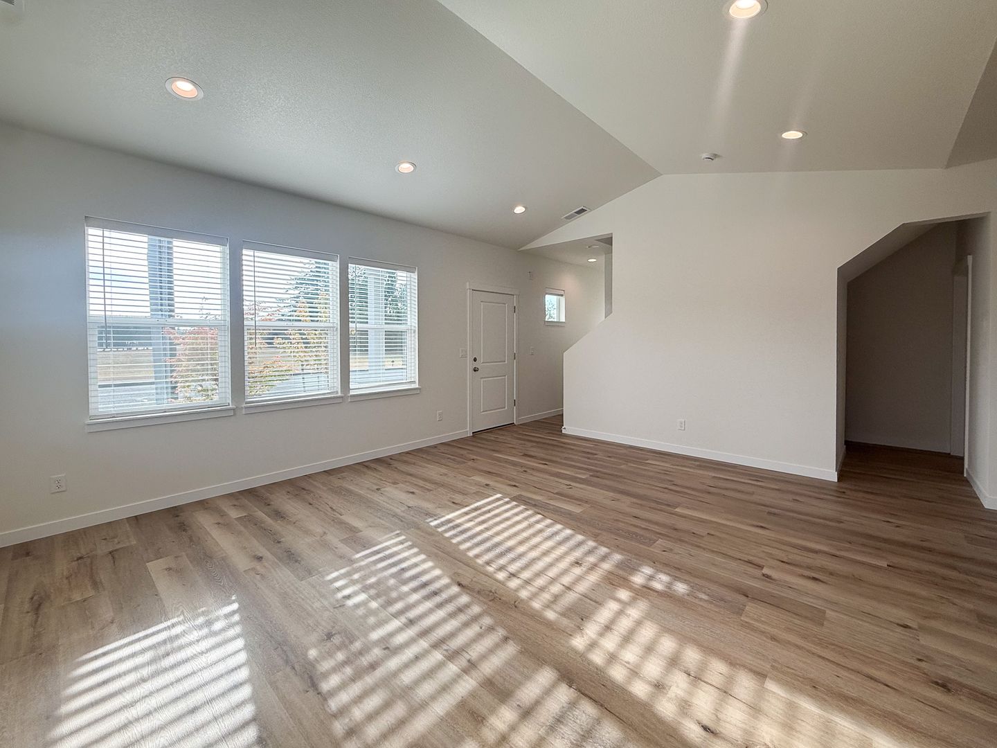 Be the first to live in this home! This home features a bright living area with large windows that offer a lovely view of the covered patio and a spacious, fenced backyard. The kitchen is equipped with modern appliances, including a refrigerator, stove/oven, dishwasher, and microwave, and it opens to a convenient dining area. Additionally, the main floor includes the laundry area (washer/dryer included), and the primary bedroom with a full bathroom that includes double sinks.