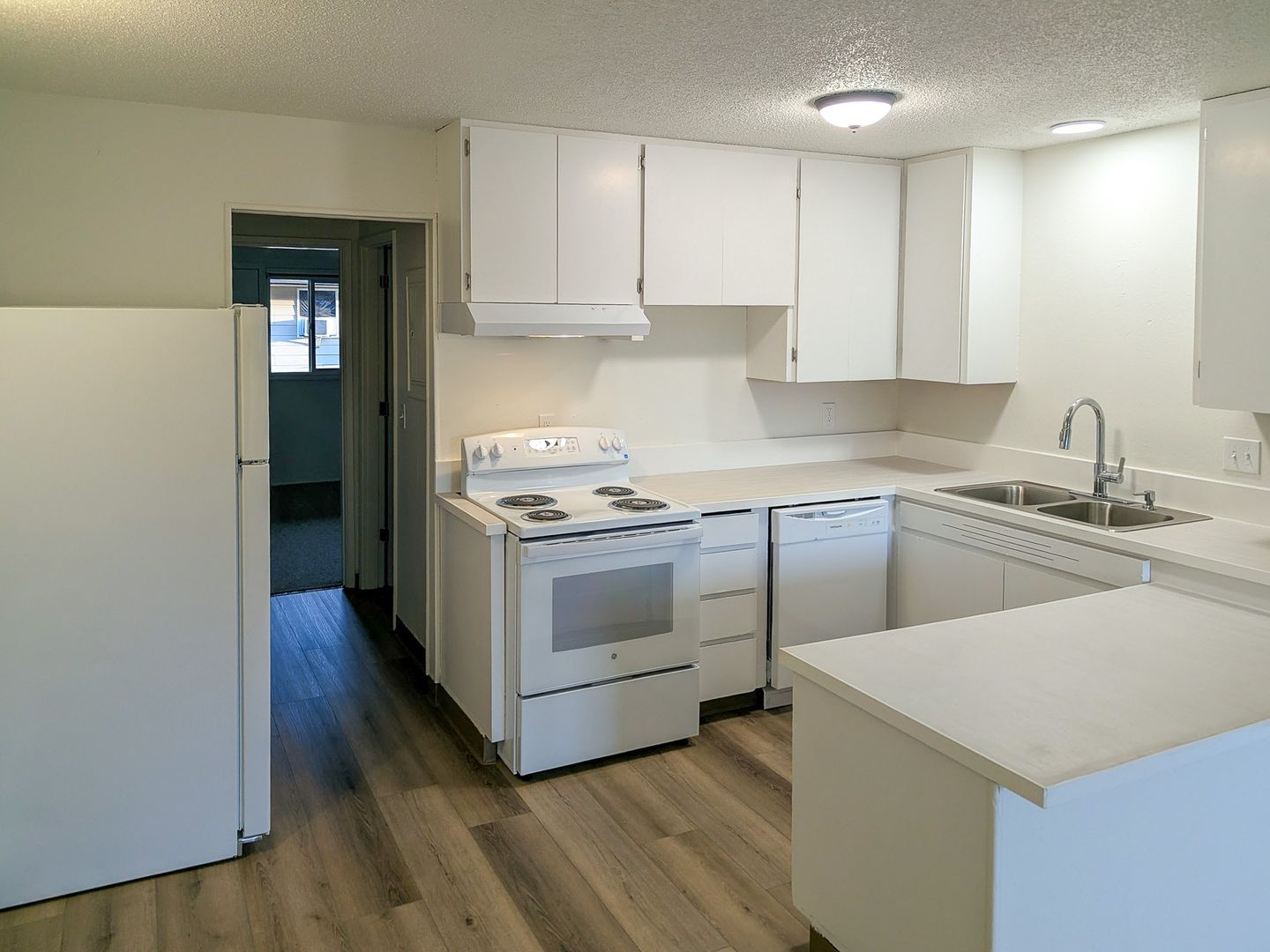 This UPDATED unit features NEW kitchen countertops and NEW appliances such as refrigerator, dishwasher, and stove/oven. The unit also has NEW flooring throughout and electric wall cadet heaters.