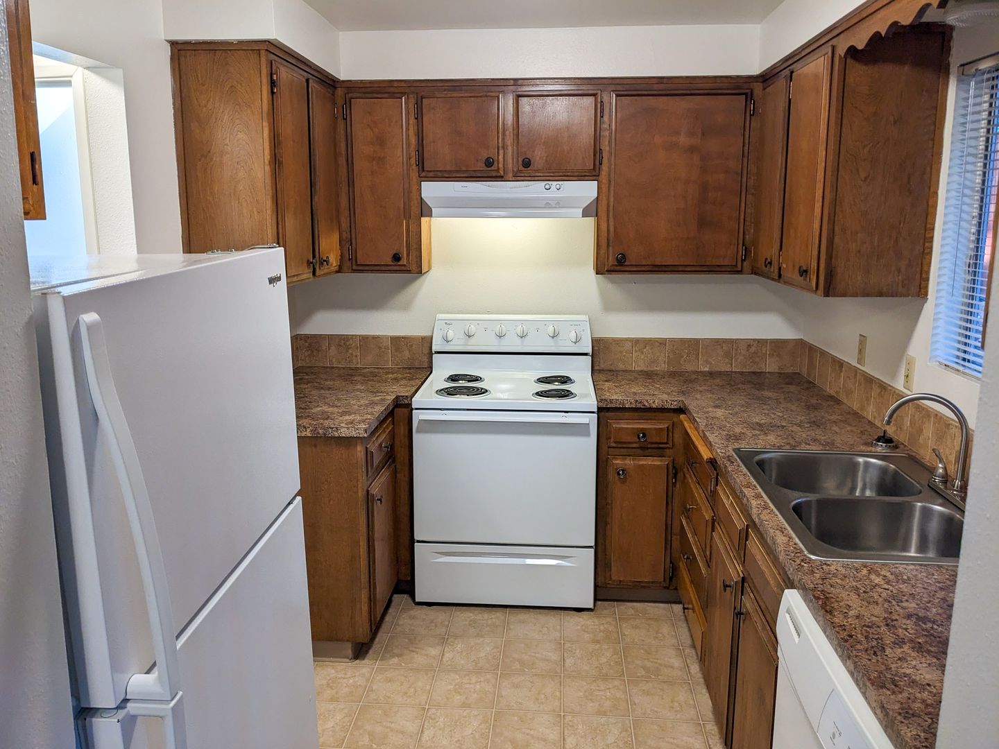 The kitchen includes a refrigerator, dishwasher, stove/oven and garbage disposal. Other features include a balcony and on-site laundry facility. On-site parking for one vehicle is included.