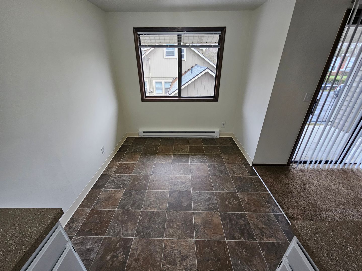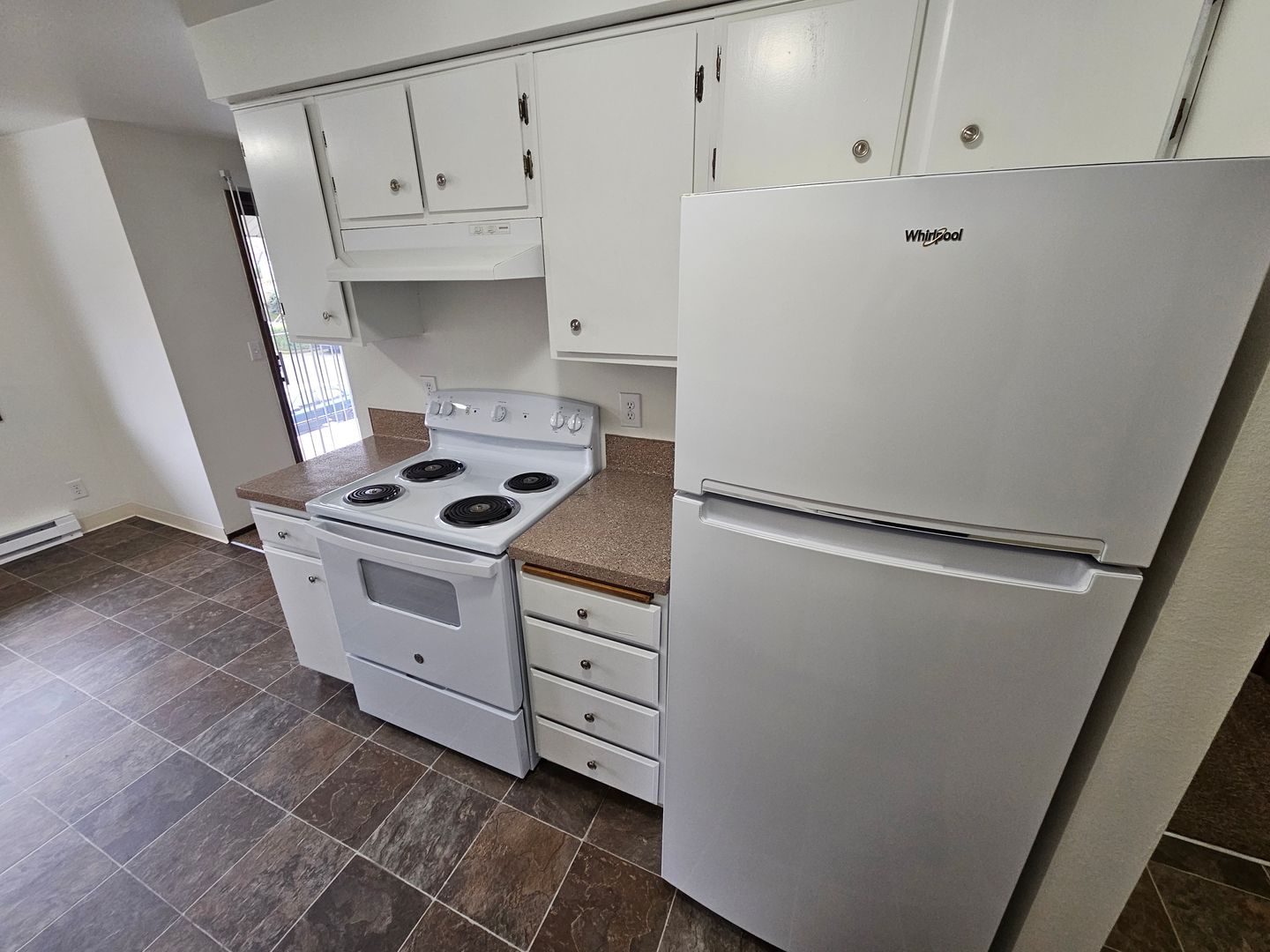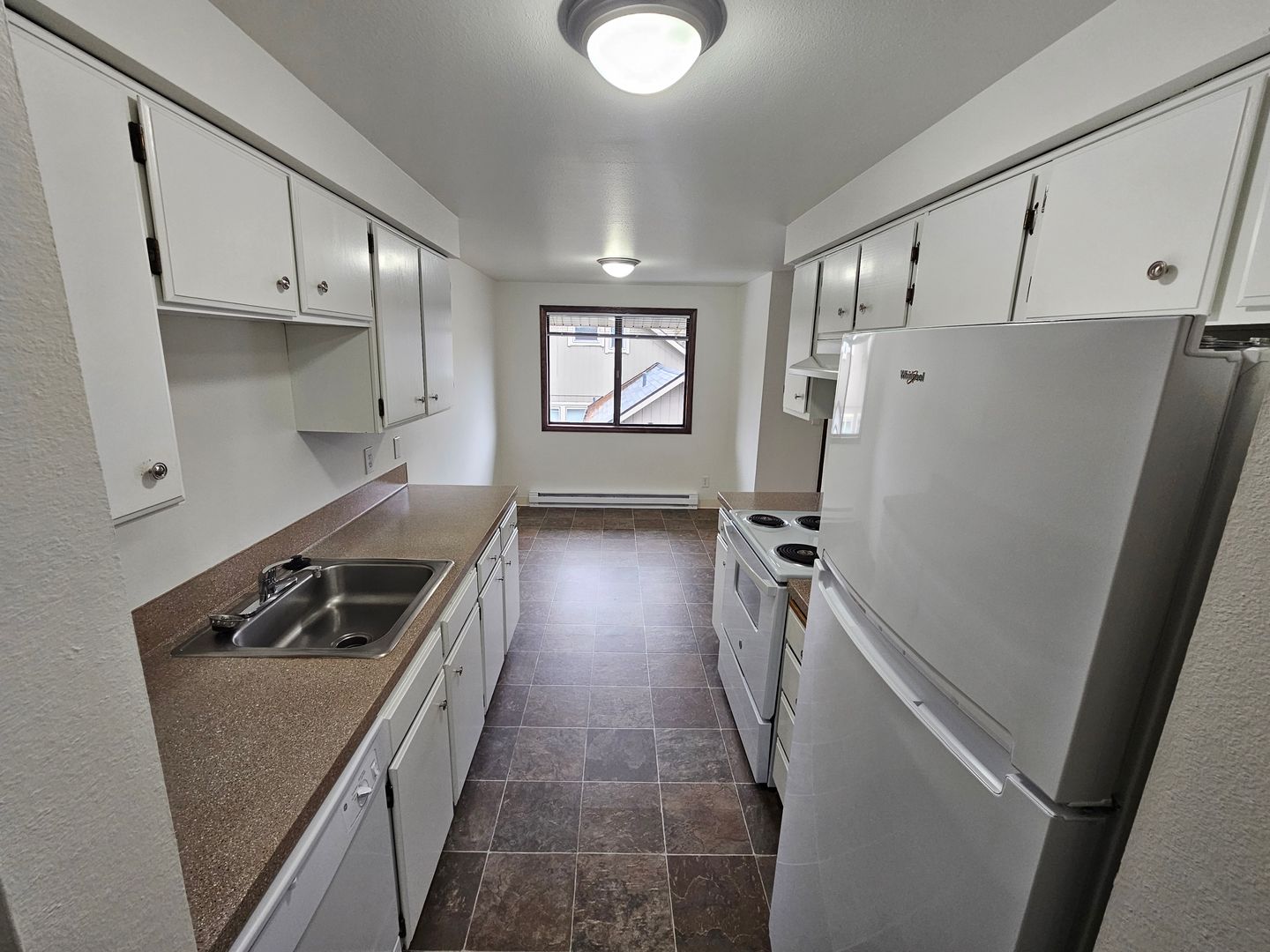 This upstairs unit features a sliding glass door to the back patio with an exterior storage closet! The galley style kitchen includes a refrigerator, stove/oven and dishwasher. Other features of the unit include a dining area, baseboard heating, on-site laundry and off-street parking for one vehicle.