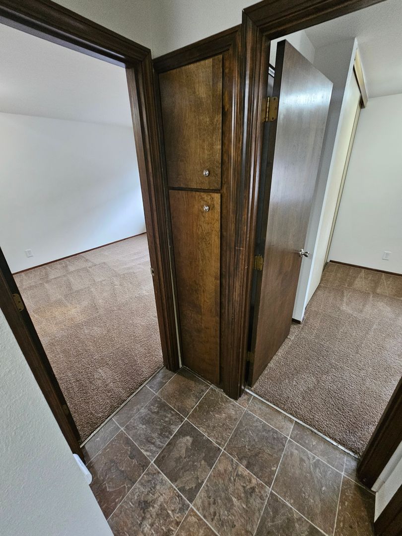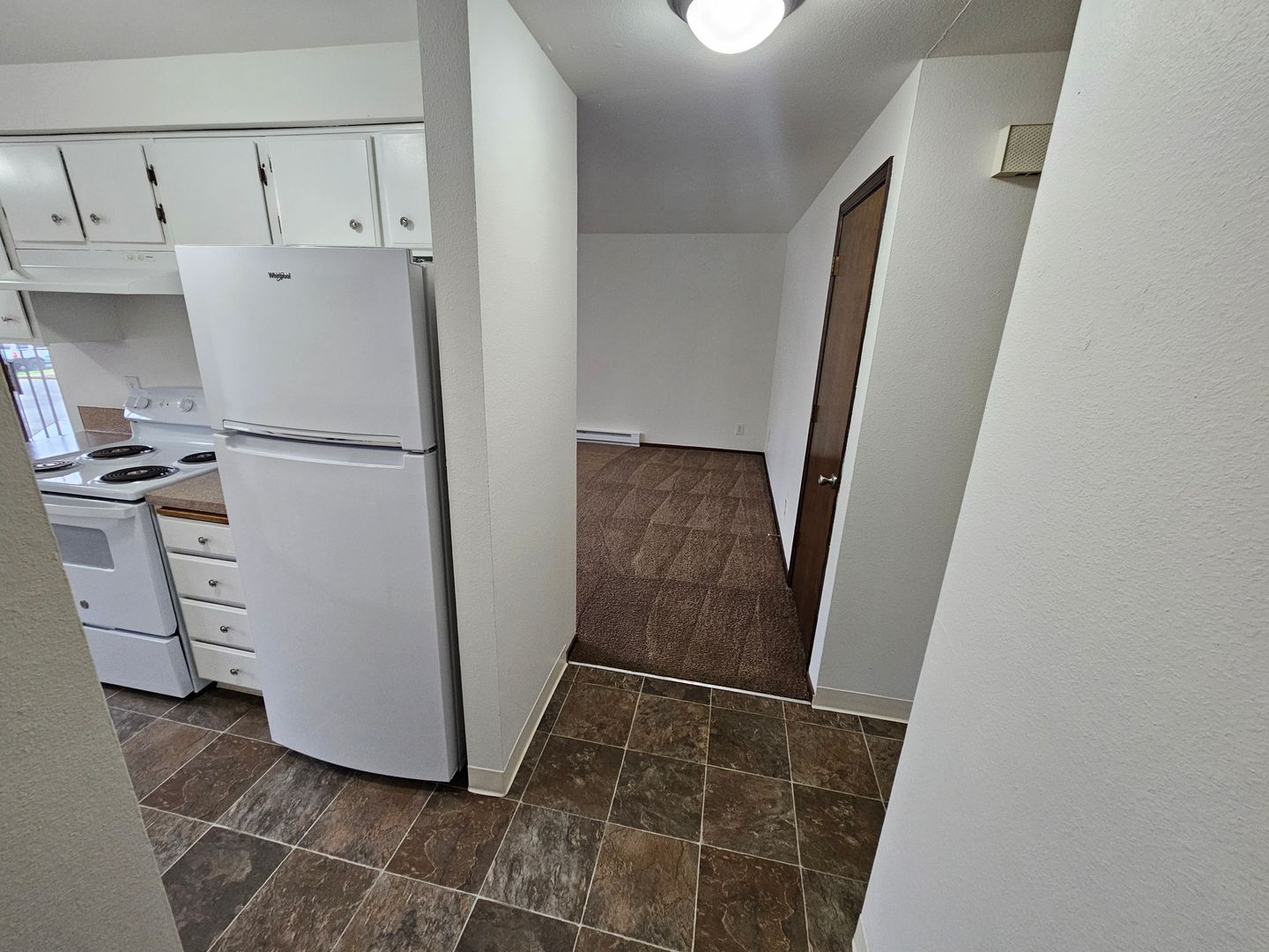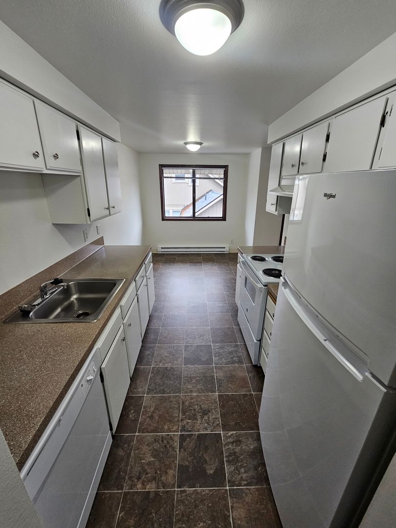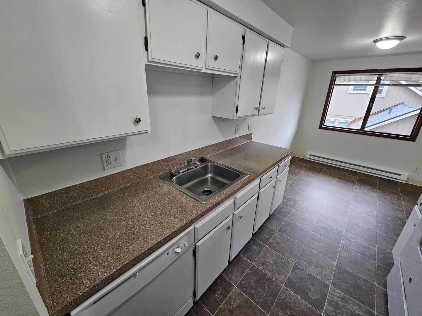 This upstairs unit features a sliding glass door to the back patio with an exterior storage closet! The galley style kitchen includes a refrigerator, stove/oven and dishwasher. Other features of the unit include a dining area, baseboard heating, on-site laundry and off-street parking for one vehicle.