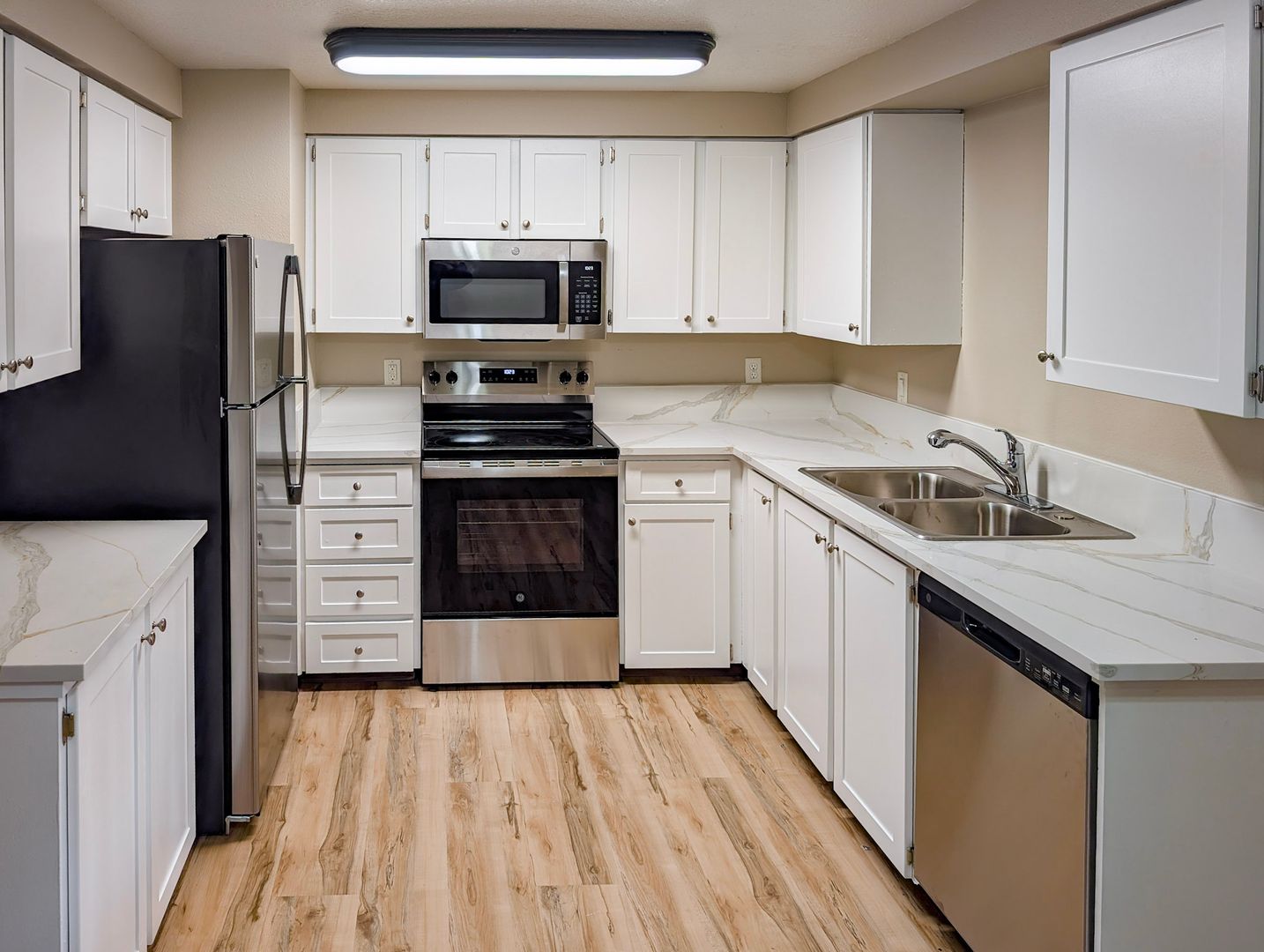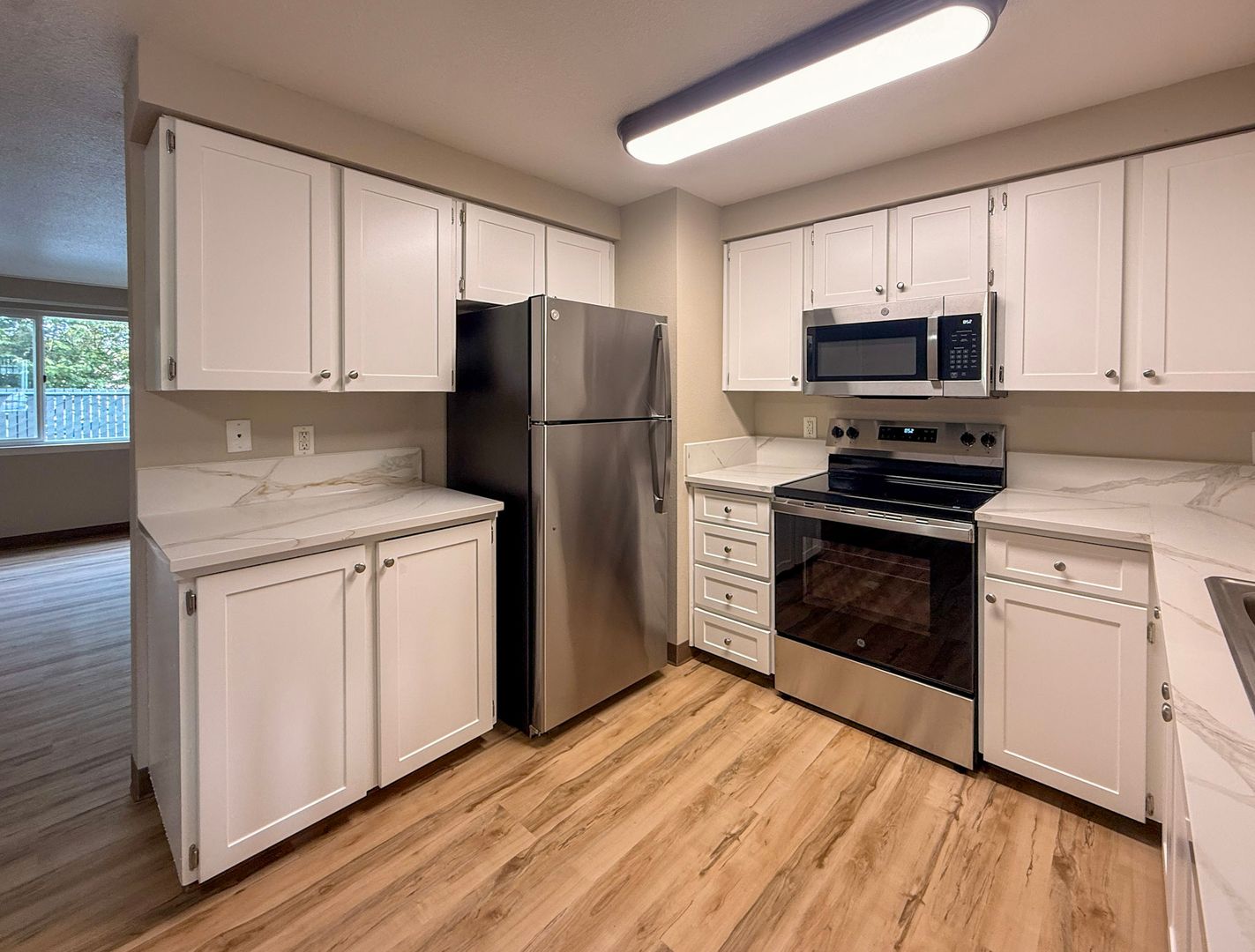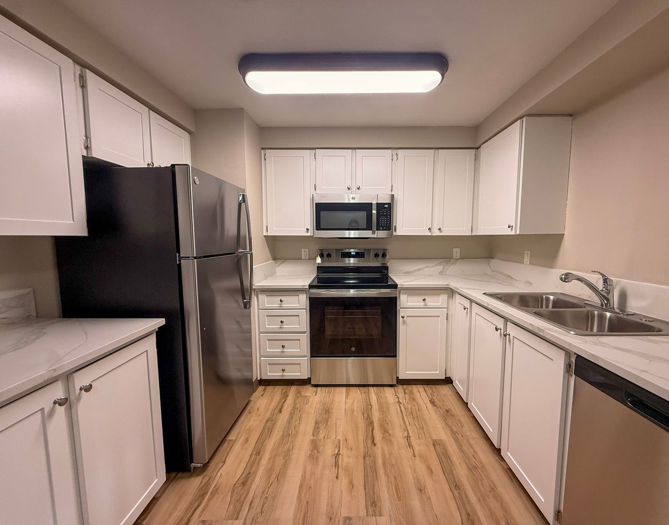 The kitchen includes a refrigerator, microwave, dishwasher and stove/oven. The unit also features cadet wall heaters, ceiling fan, vinyl windows, washer/dryer hookups, on-site laundry room, on-site fitness room, assigned parking and off-street parking as well as two EV charging spaces!