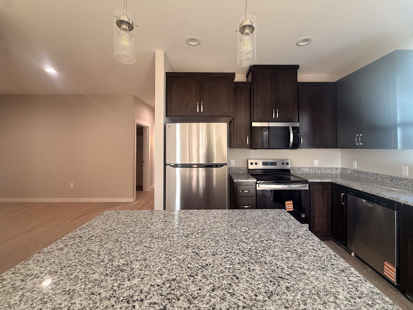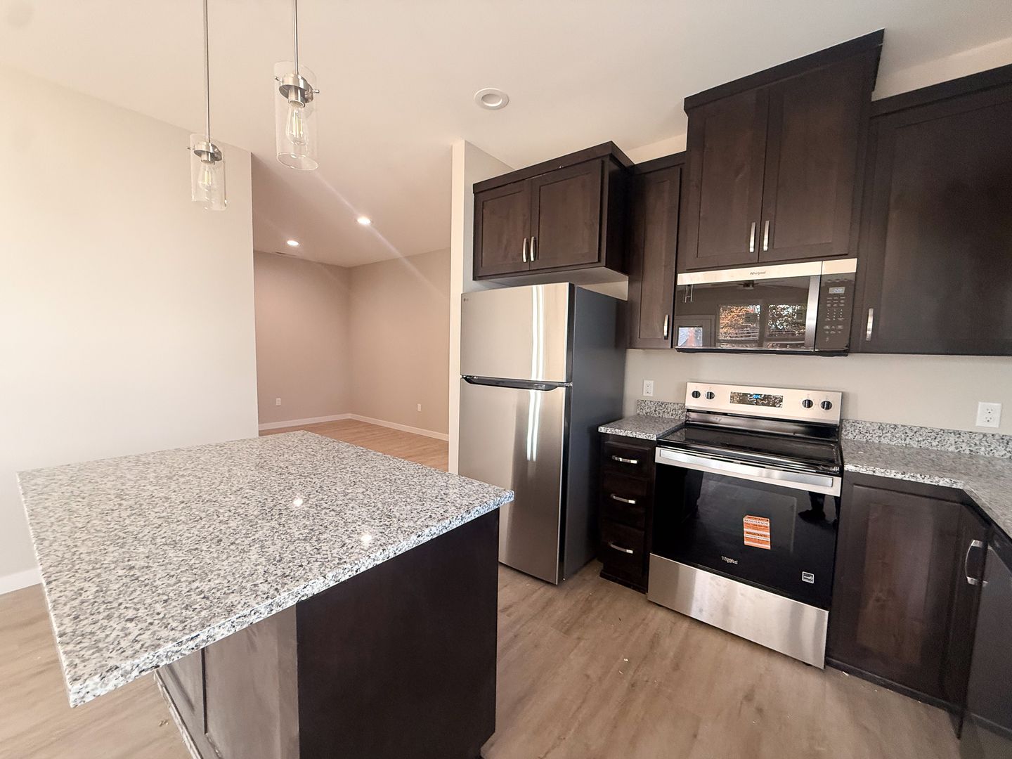 Be the first to live in this NEW CONSTRUCTION single level 4 Plex, which features a modern kitchen equipped with stainless steel appliances, including a refrigerator, stove/oven, dishwasher, and microwave, along with a convenient pantry. The spacious dining area also includes a ceiling fan for your comfort.