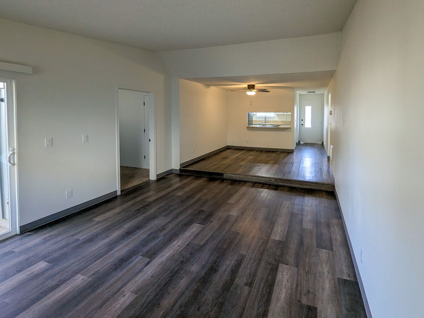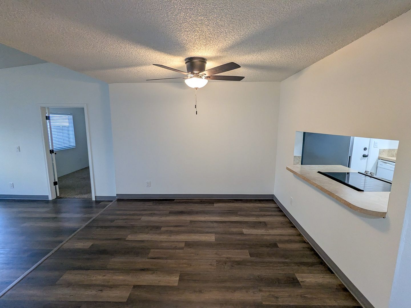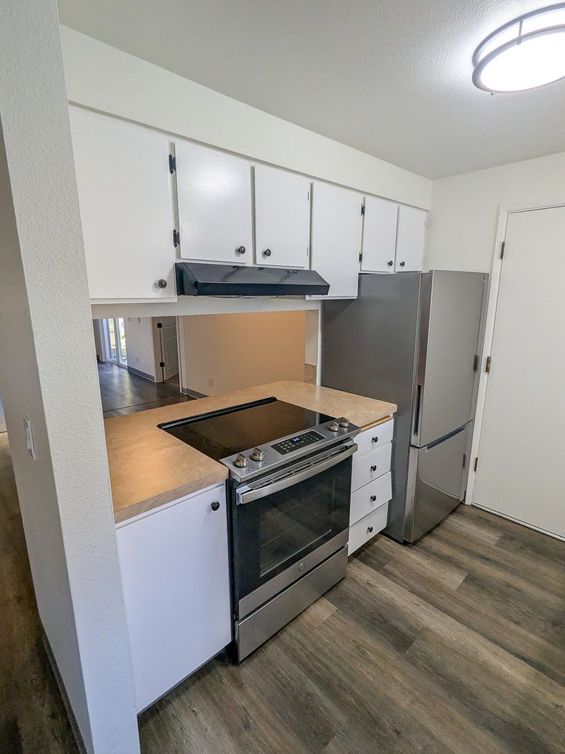 This unit features LVP flooring! The kitchen is fully equipped with a tile backsplash, stove/oven, dishwasher, and refrigerator. Additional features include cadet heaters, and washer/dryer hook-ups. The unit also offers a ceiling fan in the dining area, a sliding glass door from the living room to the back area, and an attached garage.