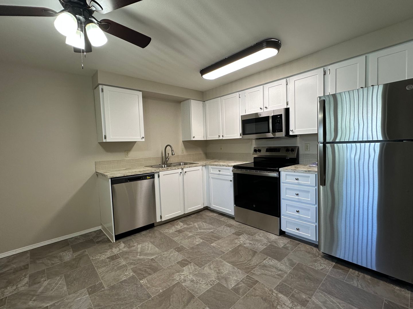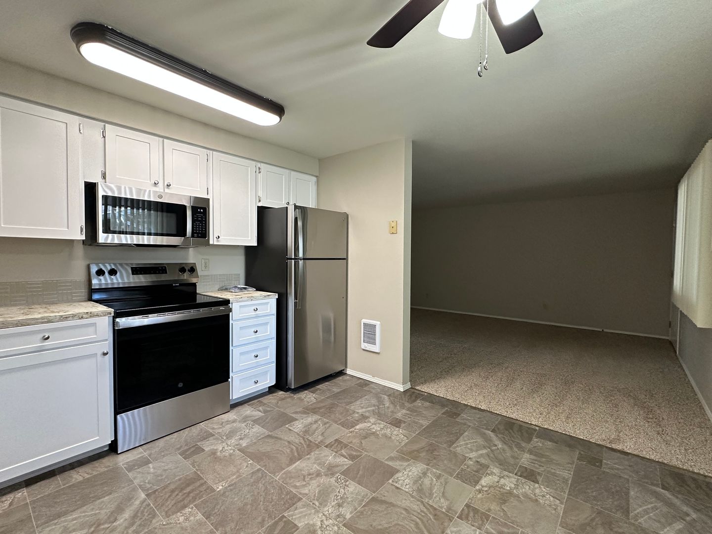 This unit has stainless steel appliances! The kitchen includes a refrigerator, microwave, dishwasher and stove/oven. The unit also features cadet wall heaters, ceiling fan, vinyl windows, washer/dryer hookups, on-site laundry room, on-site fitness room, assigned parking and off-street parking.