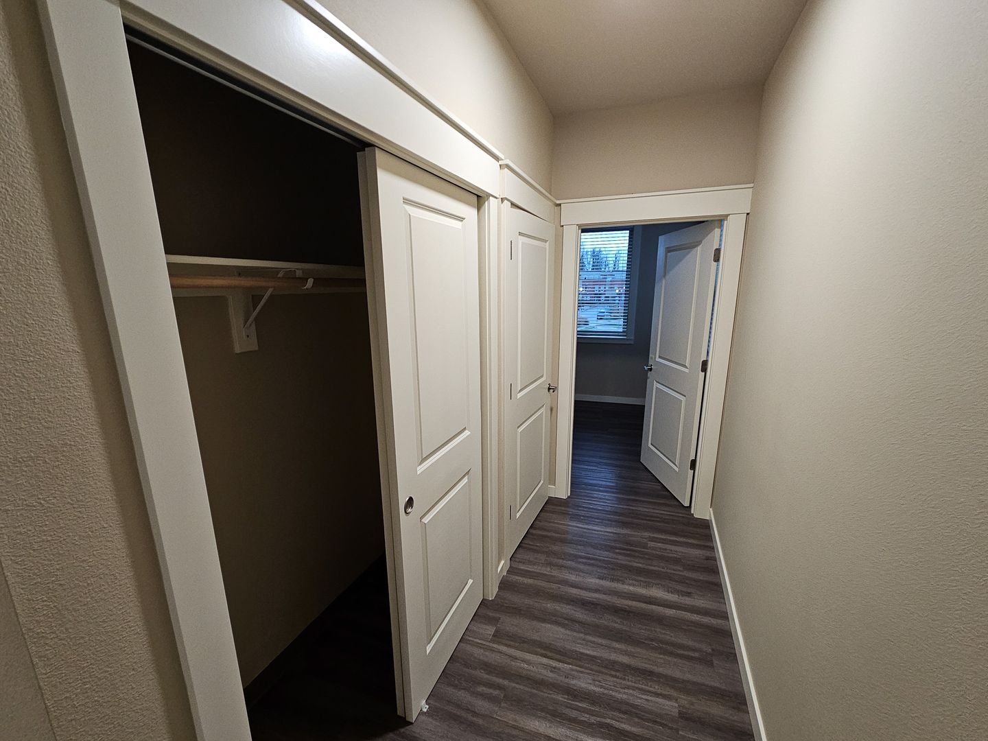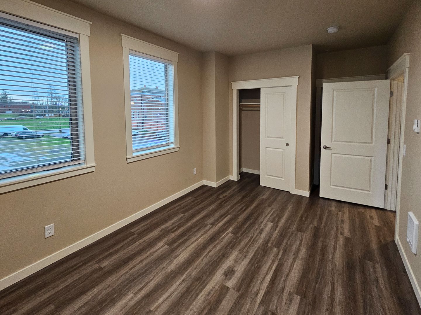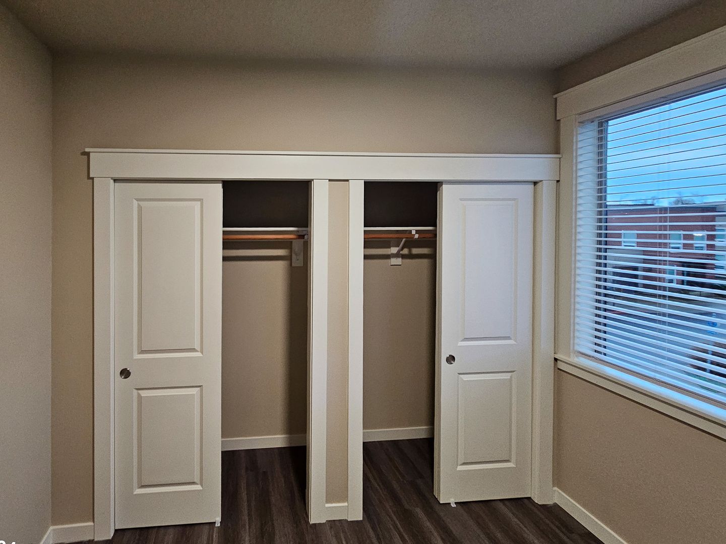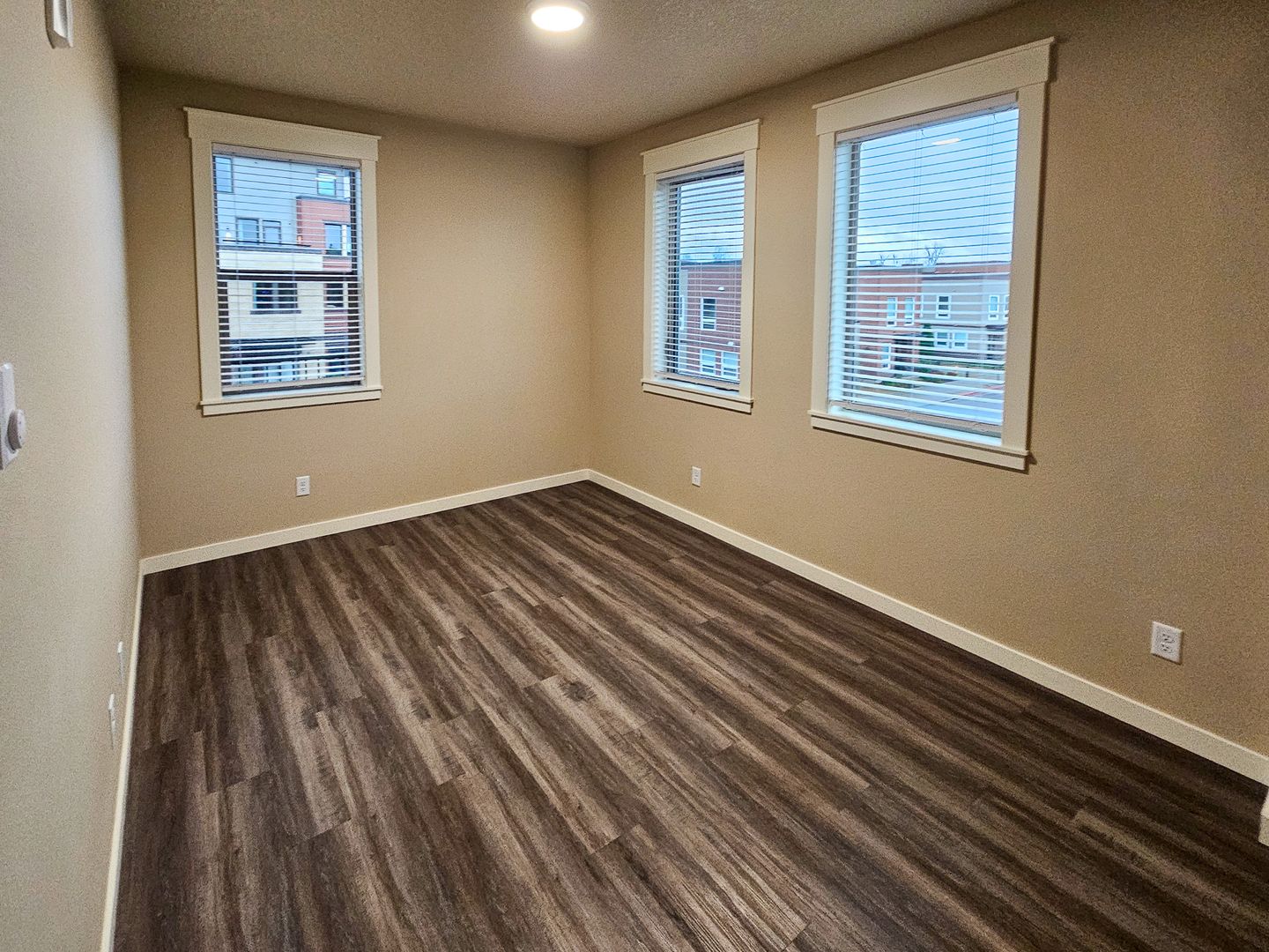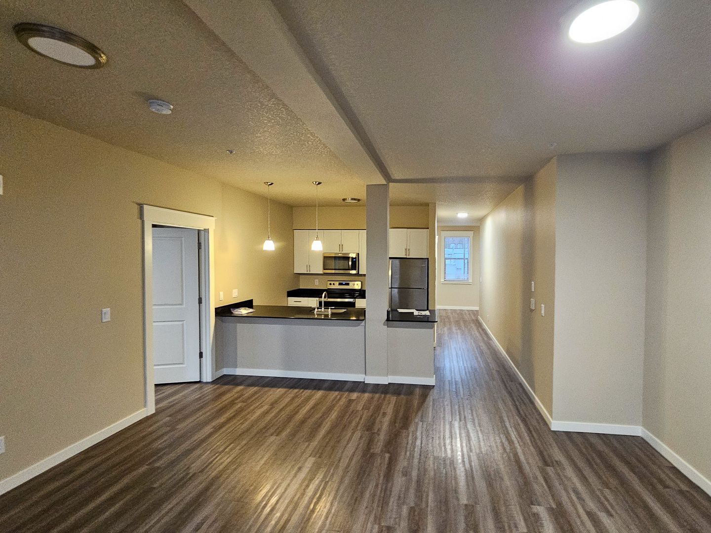 This 2nd floor two bedroom, two bathroom unit has a welcoming kitchen with stainless steel appliances (refrigerator, stove/oven, dishwasher and microwave). This unique building includes secure entry, elevator and stairway access to all floors, a welcoming lobby space and beautiful downtown/park views! These units are comfortable, modern homes, designed for the way you live. Our spacious floor plans feature great room living and dining, energy efficient in-wall heating, energy star rated appliances, full size stackable washer/dryer, and a patio or deck to extend your unit to the outdoors. These apartment homes feature beautiful finishes like granite counters, sleek cabinetry, and hardwood-style plank floors.