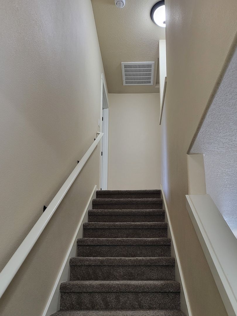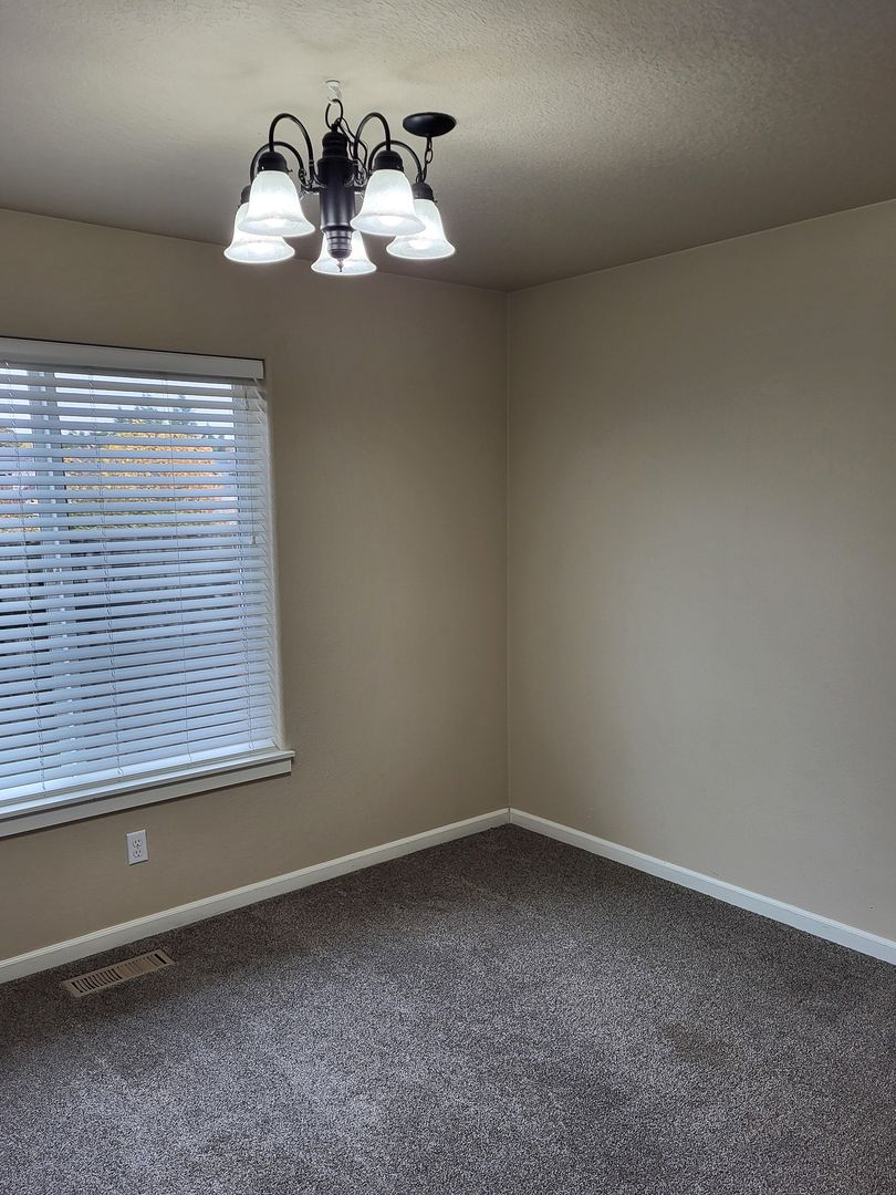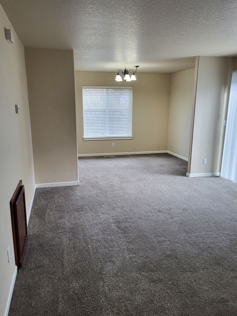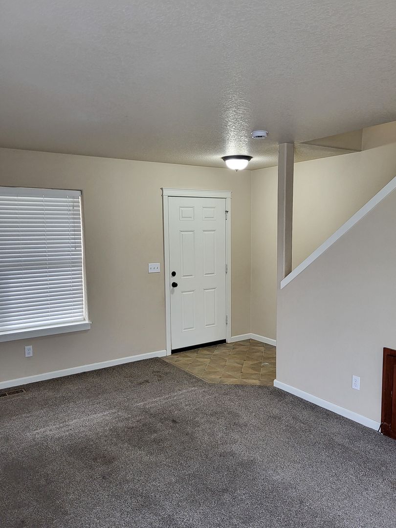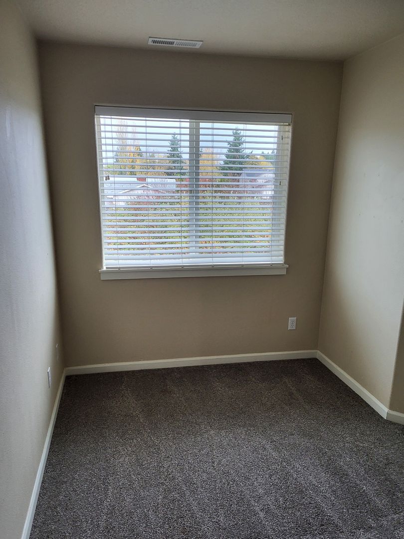 This three bedroom two and a half bathroom Salem duplex has a kitchen that includes a refrigerator, stove/oven, dishwasher, microwave and double sink. The bedrooms are located upstairs. The primary bedroom features an attached bathroom. Other features of the home include a sliding glass door to the fenced patio area, an attached single car garage, washer/dryer hook-ups and gas forced air heat.