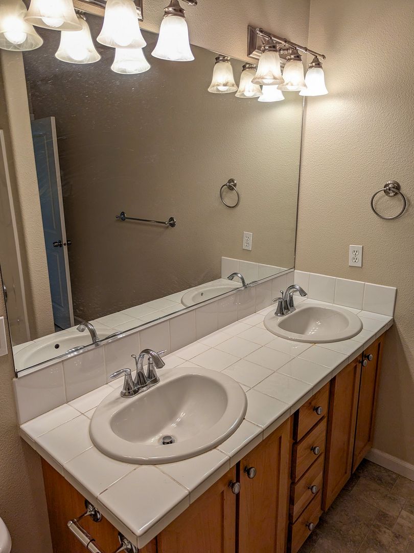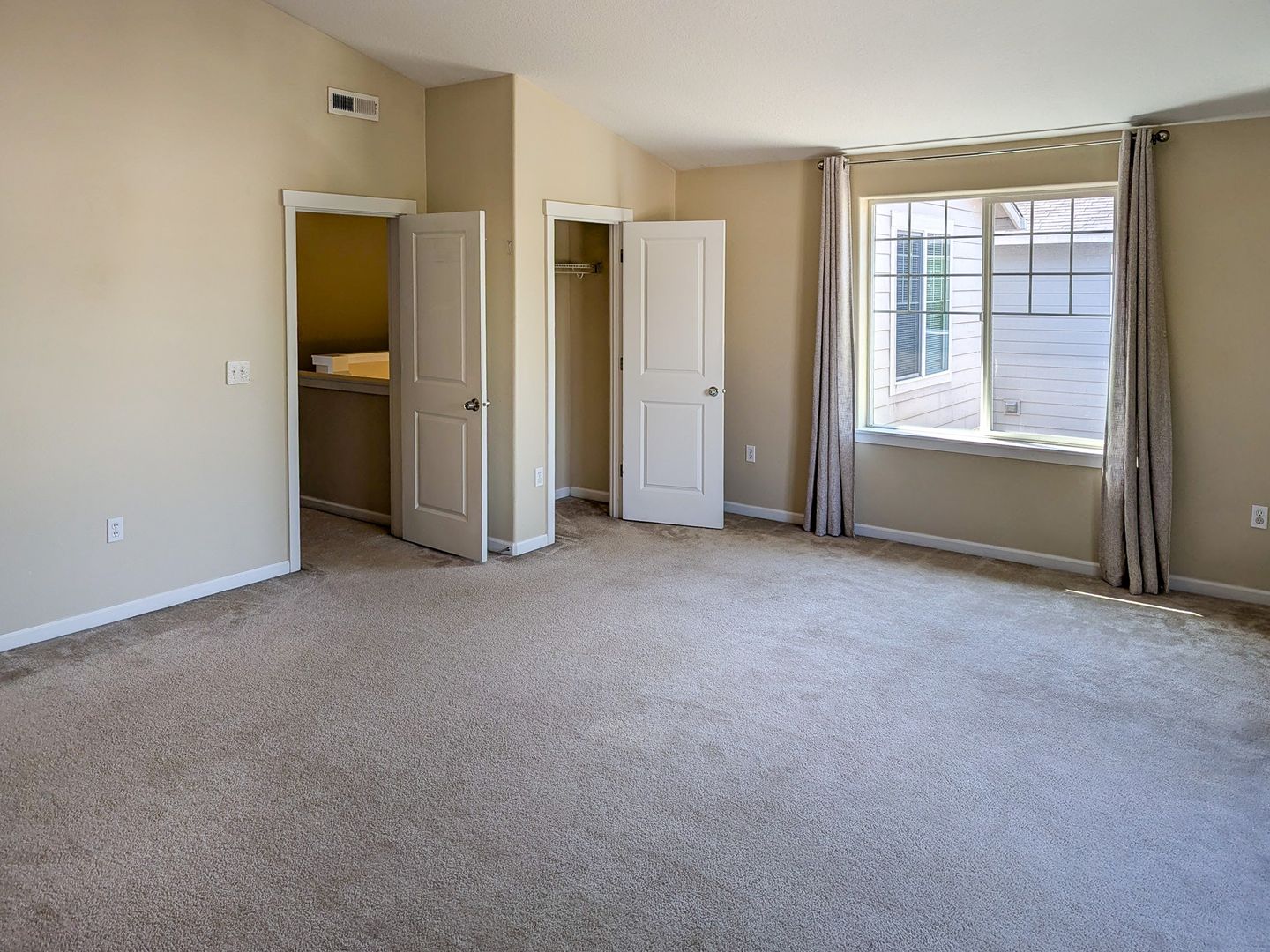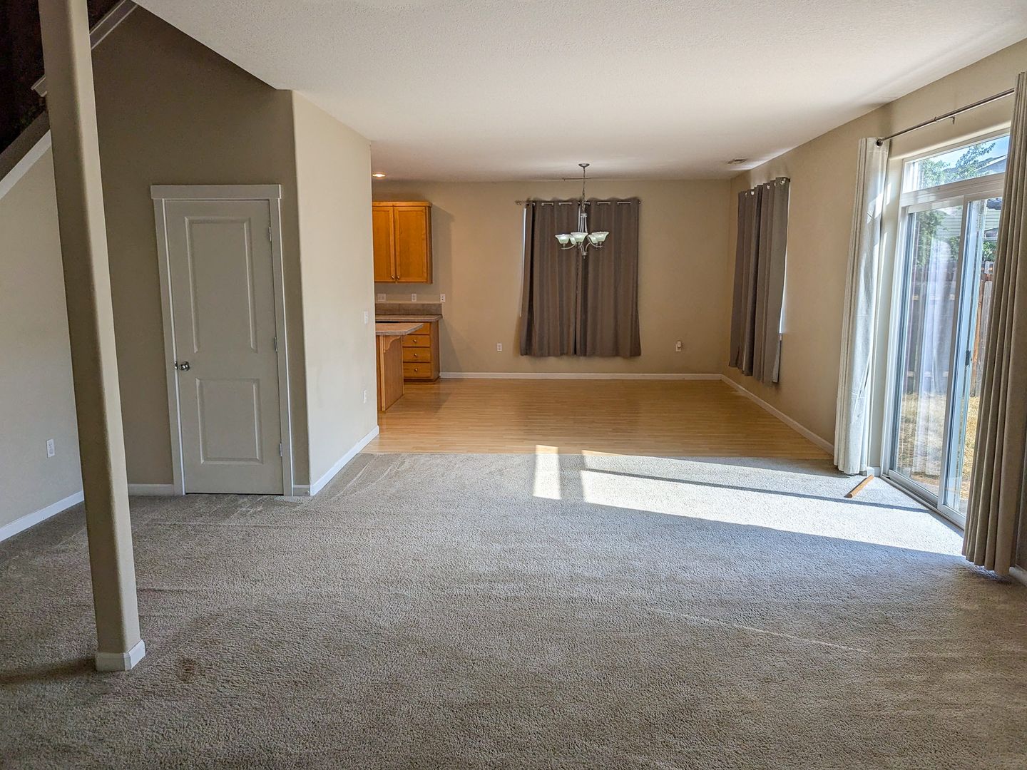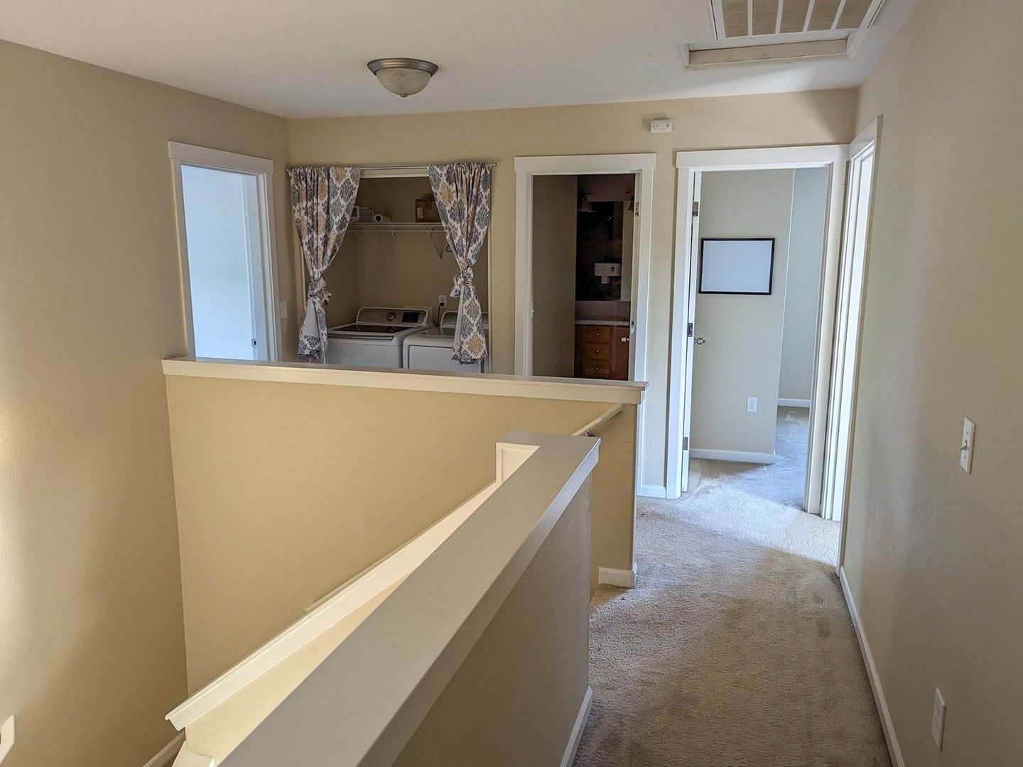 This two story SE Salem home includes a washer/dryer! The main floor has a cozy living space with a gas fireplace, a half bathroom, as well as a kitchen and dining area. The kitchen includes an island, a refrigerator, dishwasher, stove/oven and microwave. There's a sliding glass door in the living area leading to the fenced backyard. The bedrooms are located upstairs as well as the full bathrooms with double vanities, and the laundry area. The primary bedroom is spacious with vaulted ceilings and a ceiling fan.