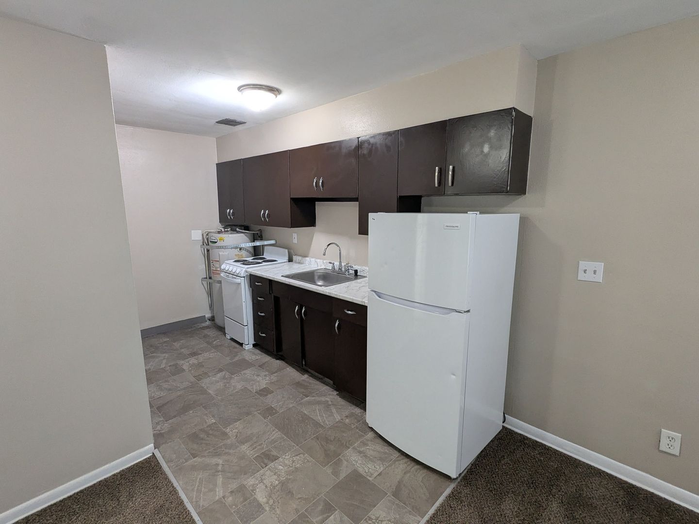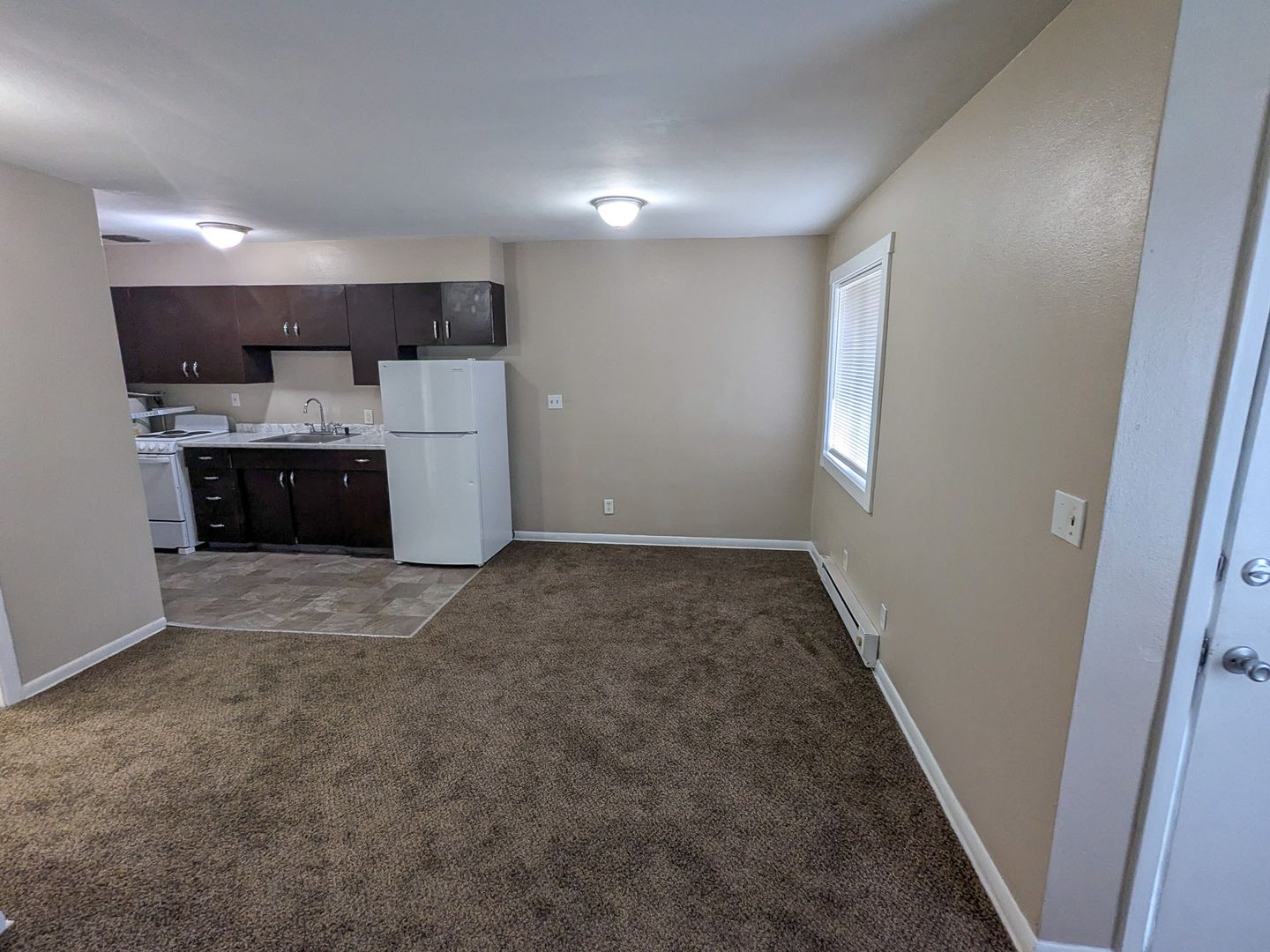 This two bedroom one bathroom unit includes a refrigerator and stove/oven. Other features of the unit include electric wall heat, an on-site laundry facility and off-street parking for one vehicle.