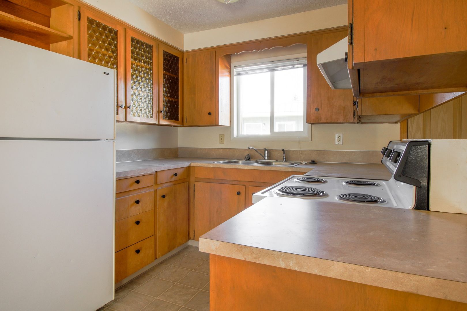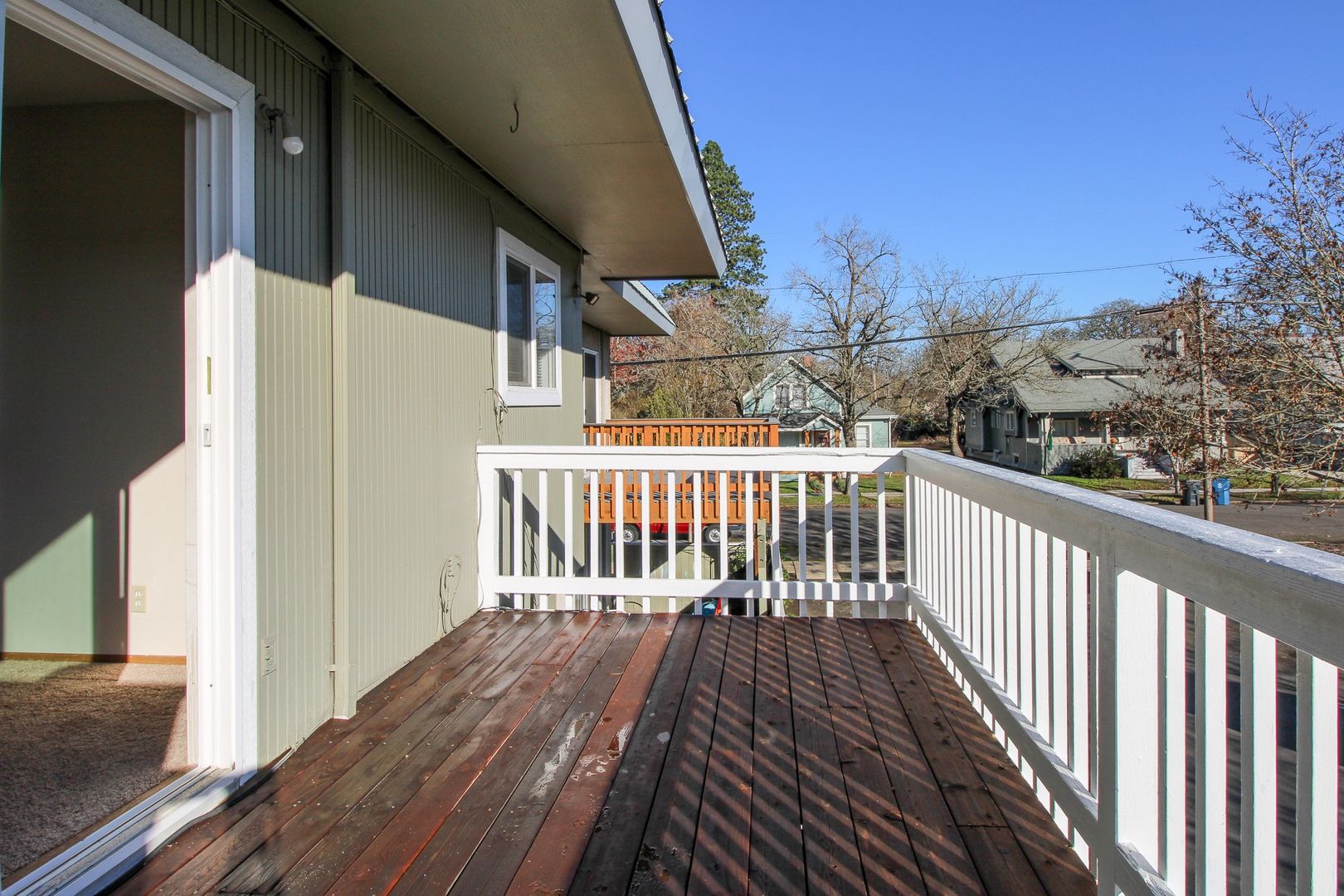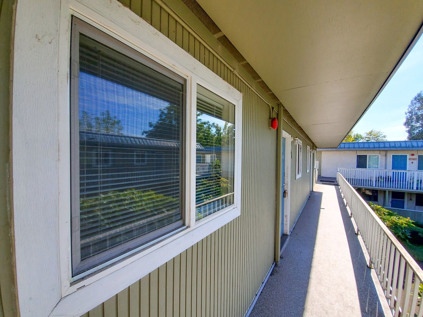 This upstairs unit features a sliding glass door that leads to its own deck. It includes lots of storage in the kitchen which also has a refrigerator, double sink and stove/oven. This complex includes onsite laundry and off-street parking.