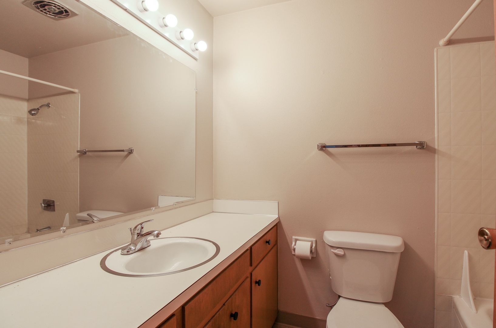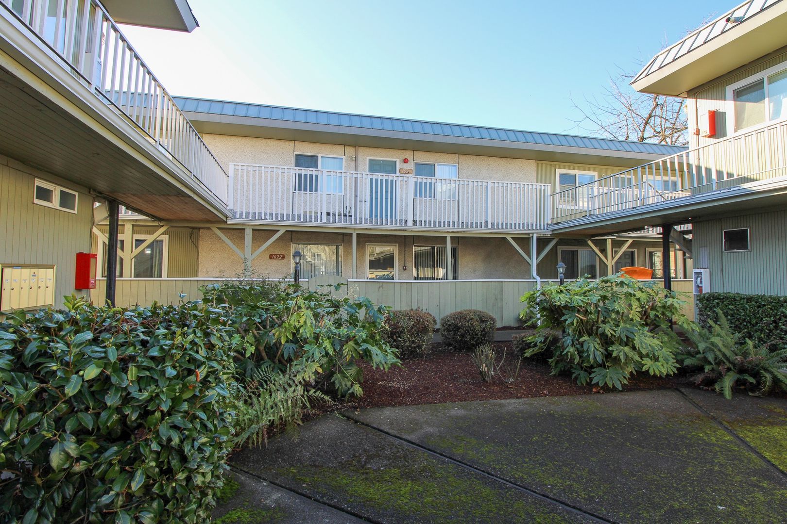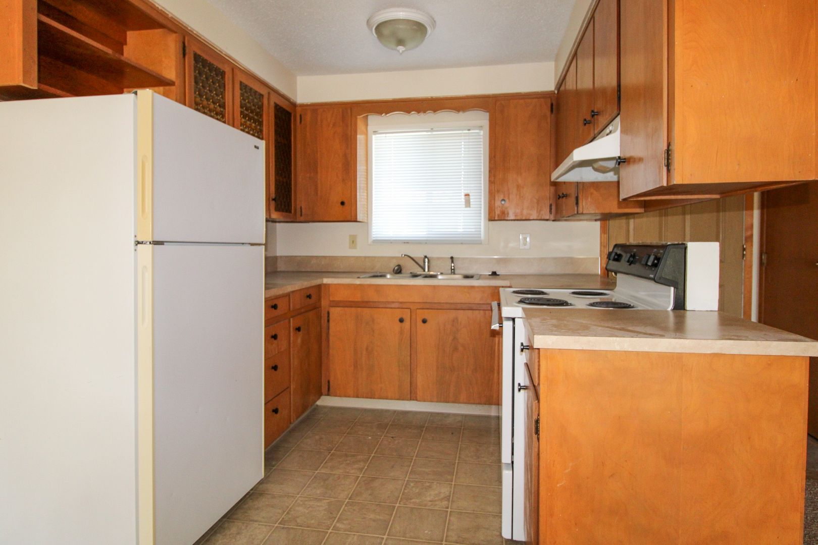 This upstairs unit features a sliding glass door that leads to its own deck. It includes lots of storage in the kitchen which also has a refrigerator, double sink and stove/oven. This complex includes onsite laundry and off-street parking.