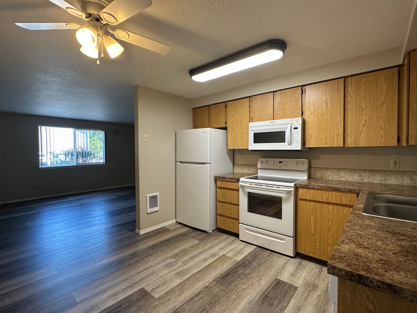 This unit has LVP flooring! The kitchen has includes a refrigerator, microwave, dishwasher and stove/oven. The unit also features cadet wall heaters, ceiling fan, washer/dryer hook-ups, on-site laundry room, on-site fitness room, assigned parking and off-street parking.