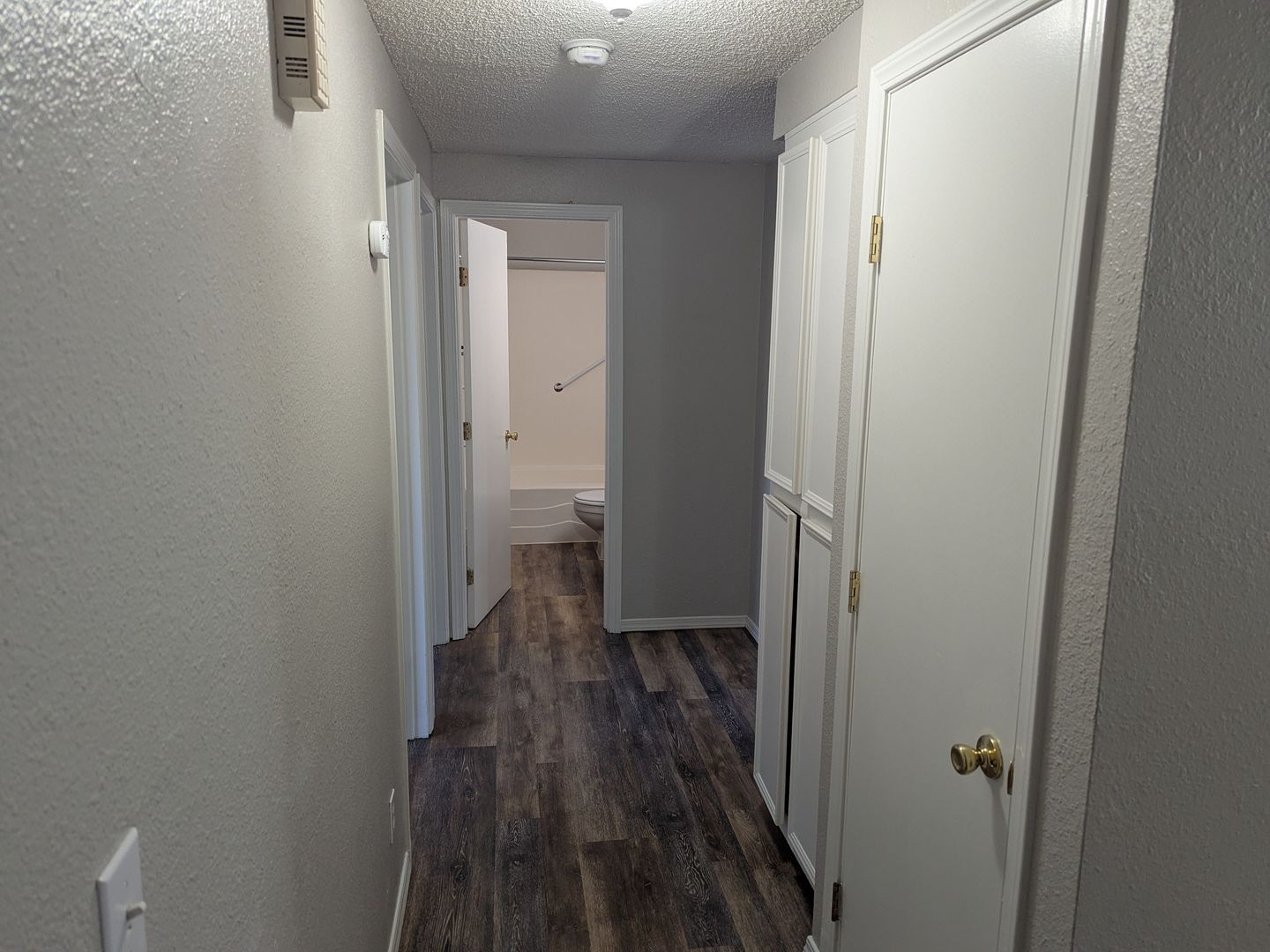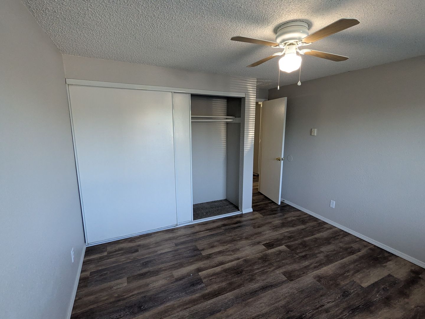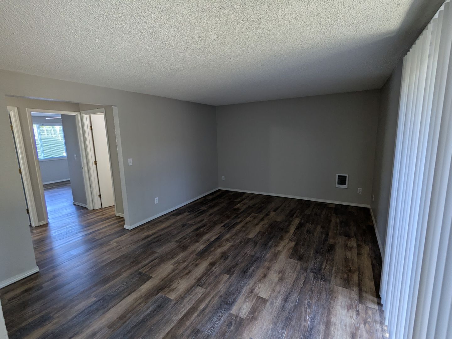 This galley style kitchen includes a dishwasher, stove/oven, and refrigerator. Other features include cadet heating, a dining area, and a sliding glass door to the covered back patio/balcony. The complex has off-street parking and 3 on-site laundry rooms.