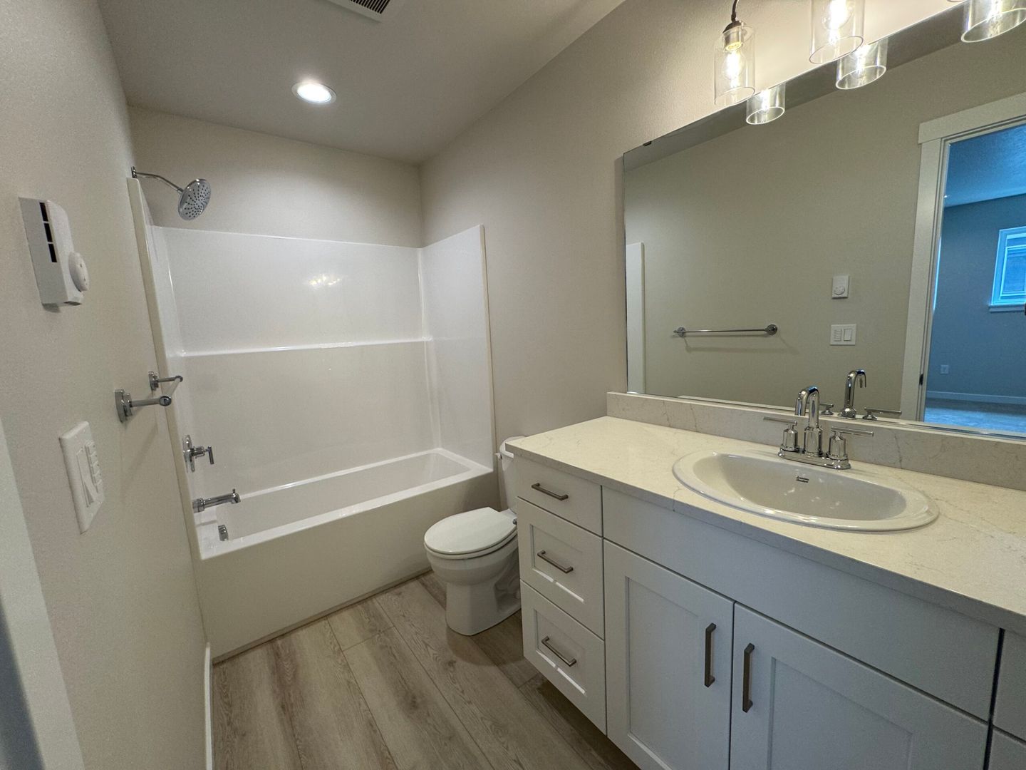 BE THE FIRST TO LIVE IN THIS NEW CONSTRUCTION UNIT! This townhome style unit features LVP flooring, stainless steel appliances (refrigerator, stove/oven, dishwasher, microwave) and quartz countertops. The living area, kitchen, primary bedroom and garage entrance are on the main floor. The primary bedroom has an attached bathroom with double vanity and walk-in shower! Other features of the unit include a washer/dryer, a sliding glass door to the fenced patio area, mini-split heat/AC, and an attached two car garage.