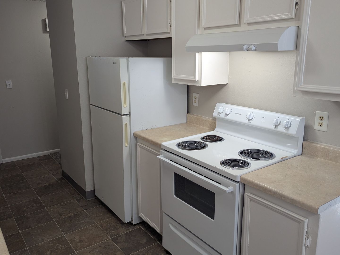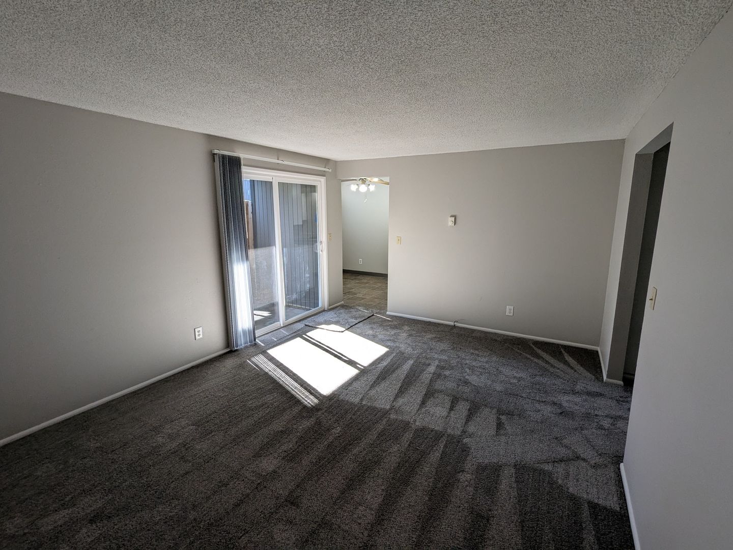 Downstairs South Salem two bedroom unit! This galley style kitchen includes a dishwasher, stove/oven, and refrigerator as well as a dining space with a ceiling fan. There is a sliding glass door to the covered back patio/balcony and multiple on-site laundry rooms as well as off-street parking.
