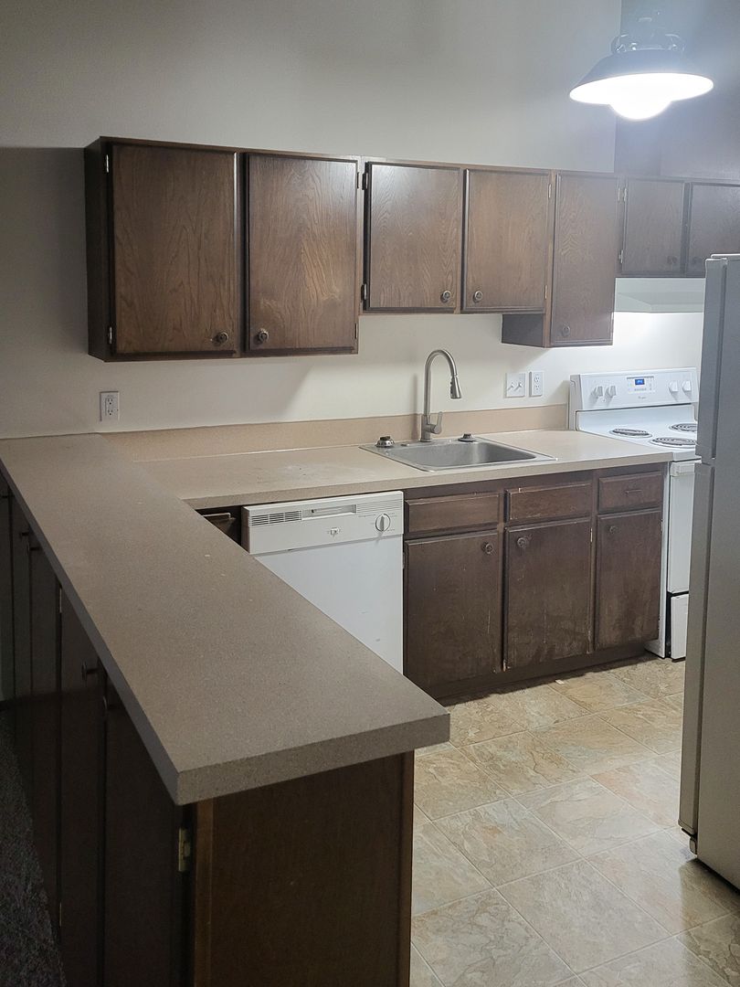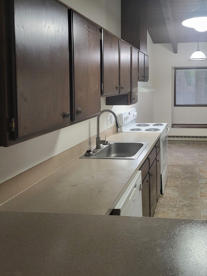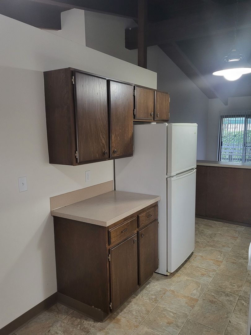 This single-level Unit offers a spacious kitchen equipped with a refrigerator, stove/oven, and dishwasher. Other features include vaulted ceilings, a sliding glass door that opens to a covered patio, as well as washer and dryer hookups.