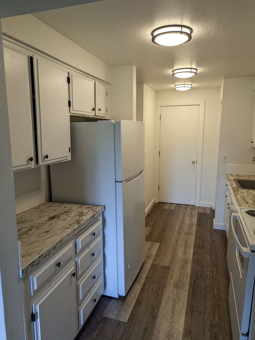 This unit has LVP flooring throughout! The kitchen includes a refrigerator, dishwasher and stove/oven. The unit also includes gas forced air heat, a dining area with ceiling fan, a sliding glass door to the back deck and shared yard area. The home also has washer/dryer hook-ups and attached single car garage.