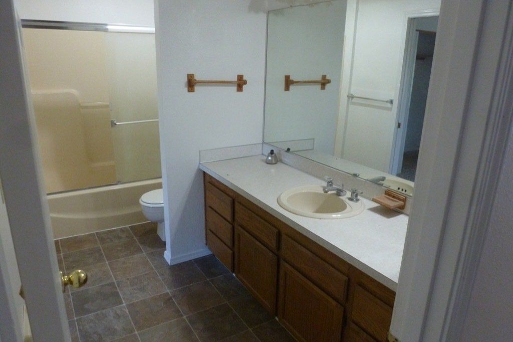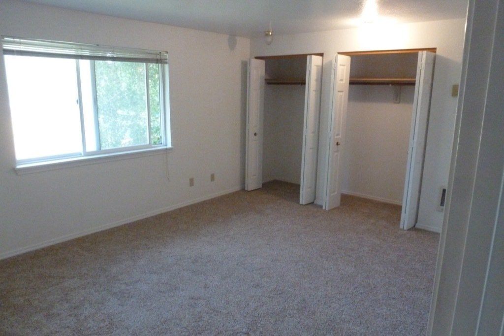 The large, spacious living room has a bay style window and is open to the dining room with the sliding glass door to the deck. The dining area also has a breakfast bar looking into the kitchen. The kitchen features a stove/oven, dishwasher, double sink, and refrigerator. The spacious bathroom has a glass door shower/bath and can be accessed by the master bedroom or the hallway. The master bedroom includes a large closet. There is an onsite laundry room and off-street parking available.